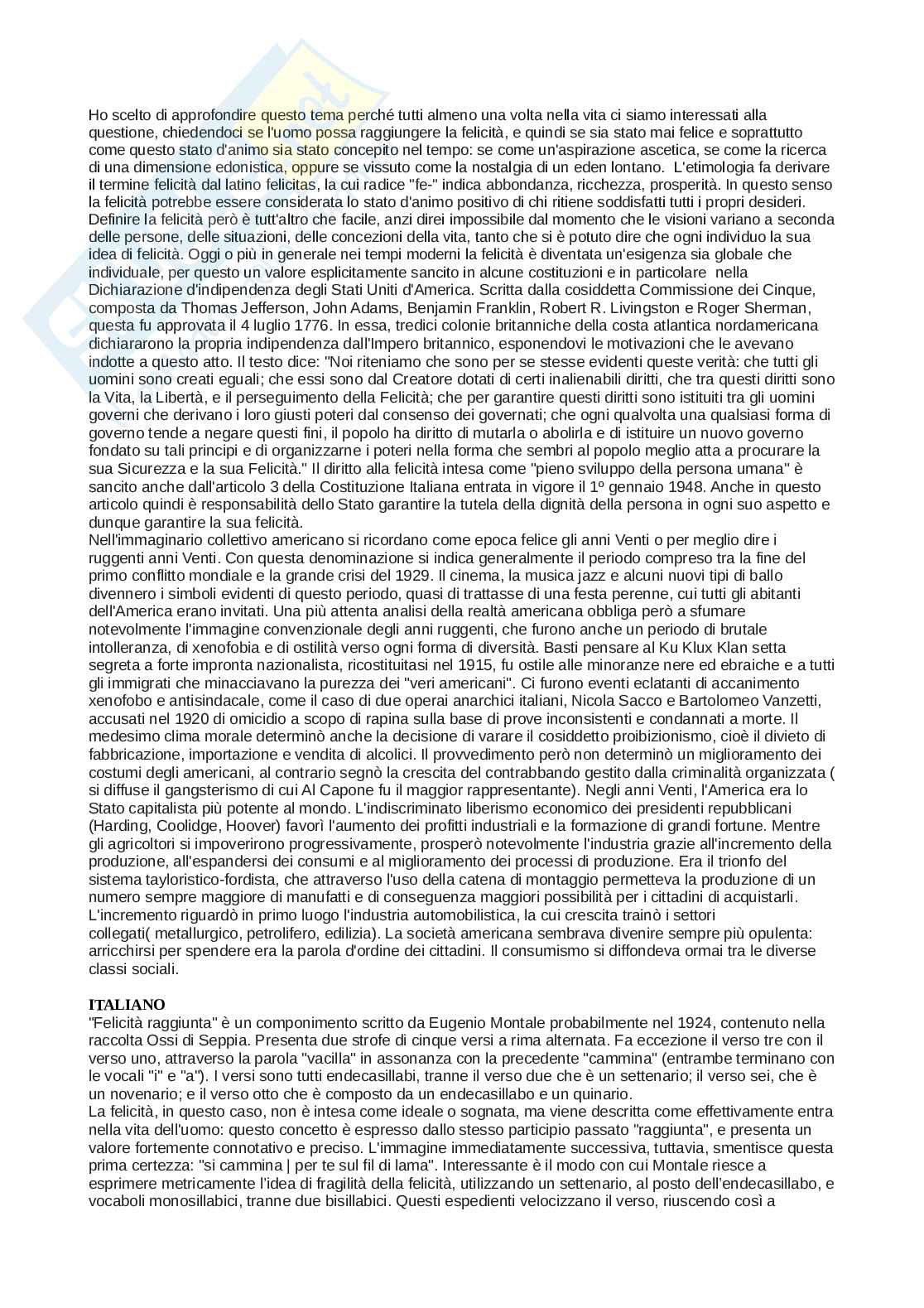 Italiano-Eugenio Montale "Felicità raggiunta".