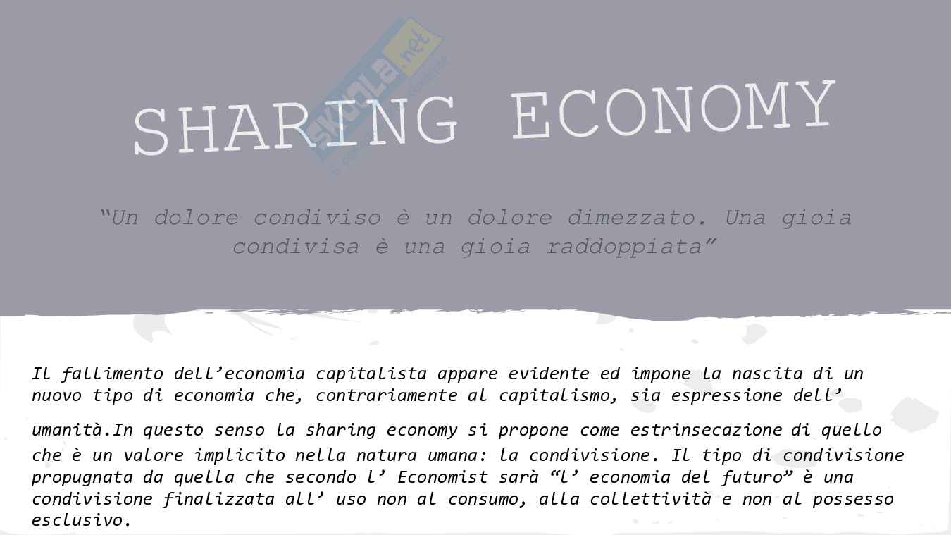 umanità.In questo senso la sharing economy si propone come estrinsecazione di quello