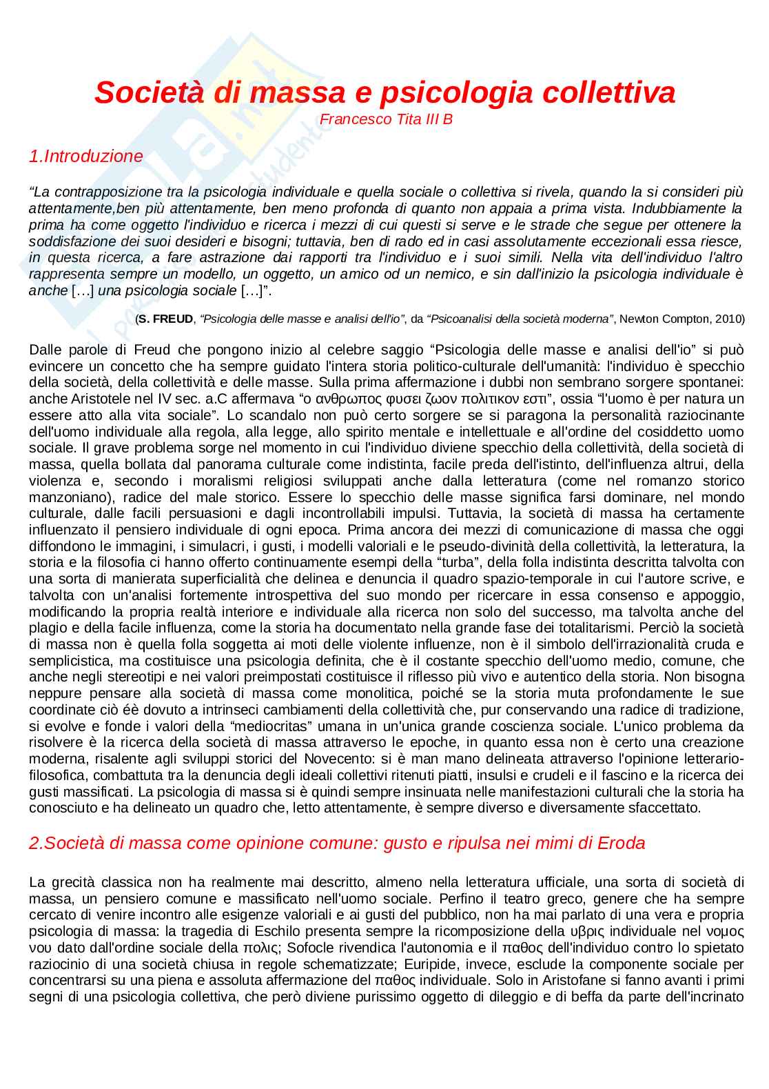 semplicistica, la società di massa e la collettività assumono già il primo connotato dell'opinione comune, del