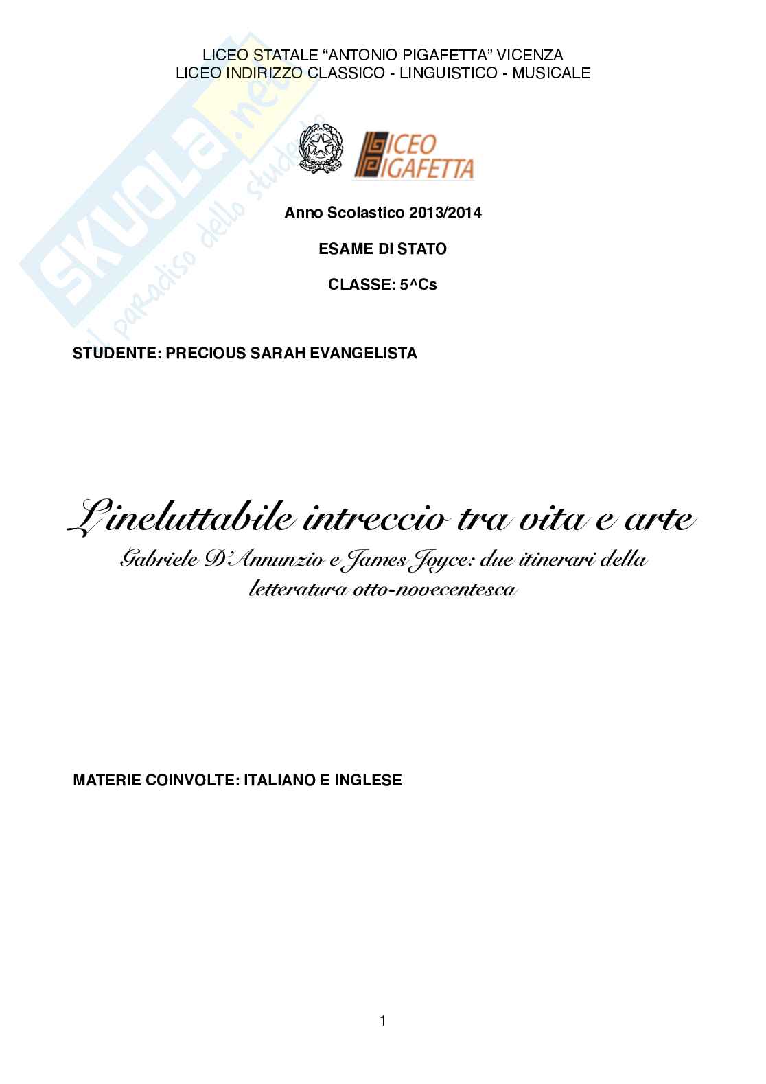dell’esteta Gabriele D’Annunzio e dello scrittore irlandese James Joyce. La conferenza