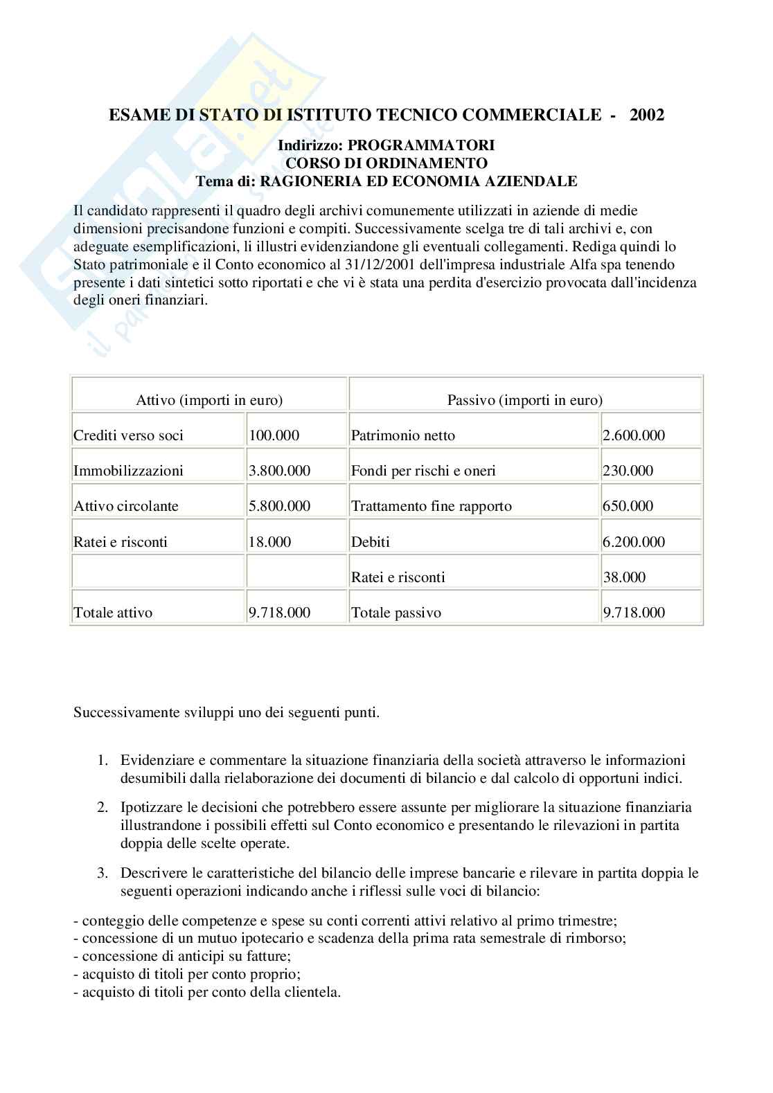 ESAME DI STATO DI ISTITUTO TECNICO COMMERCIALE - 2002