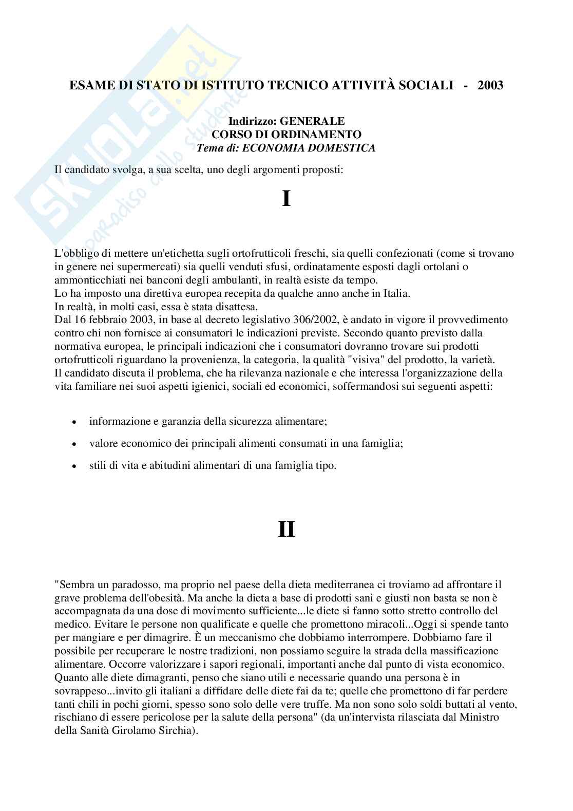 ESAME DI STATO DI ISTITUTO TECNICO ATTIVITÀ SOCIALI - 2003