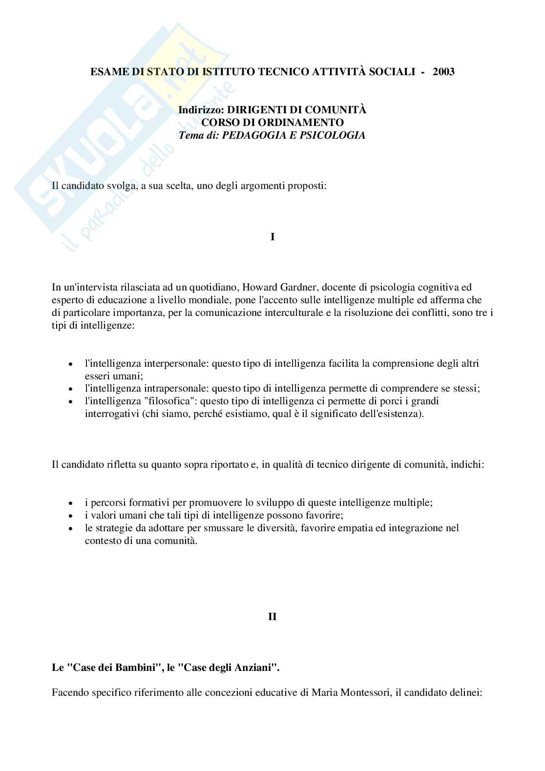 Tema di: PEDAGOGIA E PSICOLOGIA