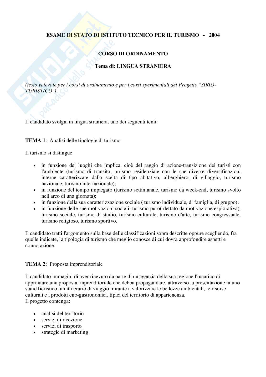 ESAME DI STATO DI ISTITUTO TECNICO PER IL TURISMO - 2004