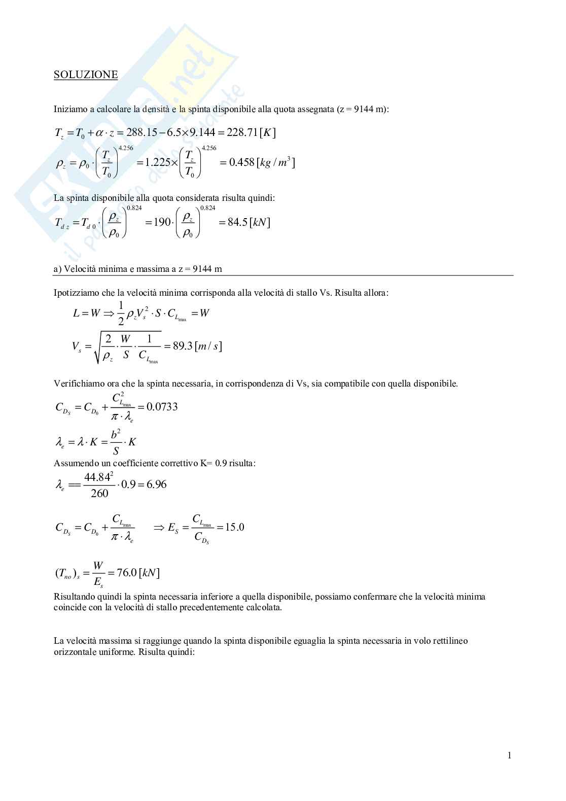 e) spinta per la massima durata di volo “t max”