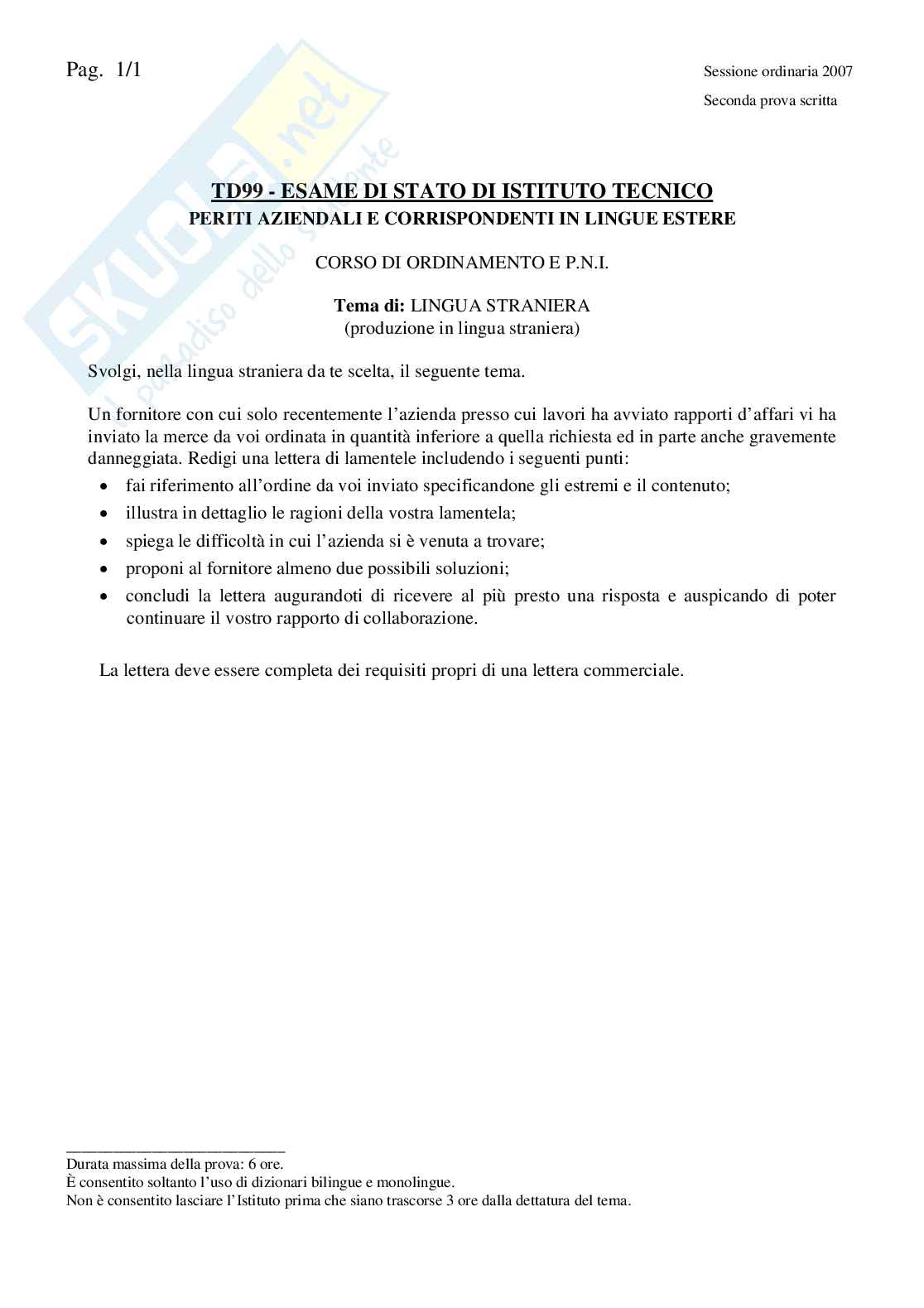 Lingua Straniera - Istituto Tecnico Pag. 1