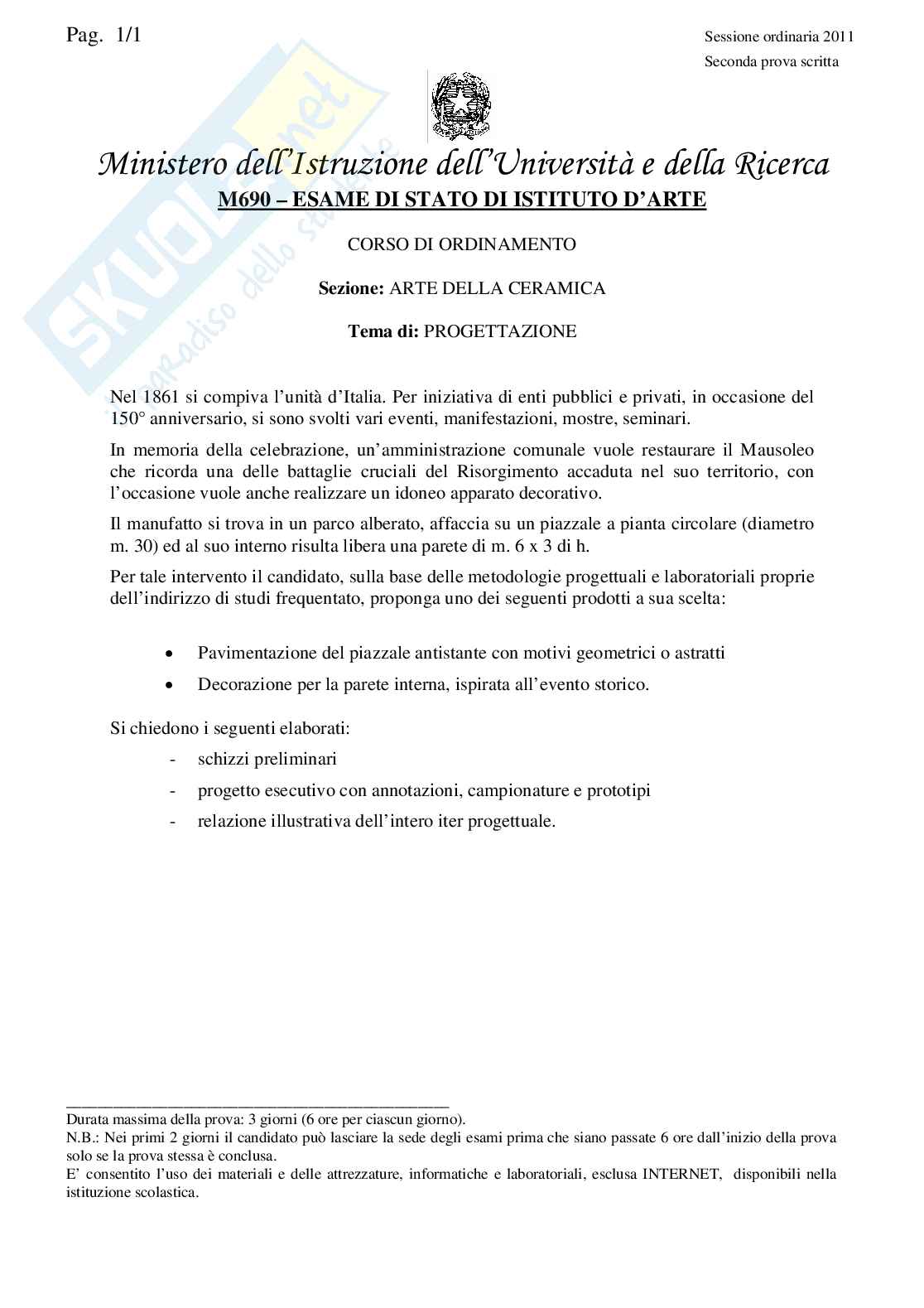 Progettazione (arte della ceramica) - Traccia Pag. 1