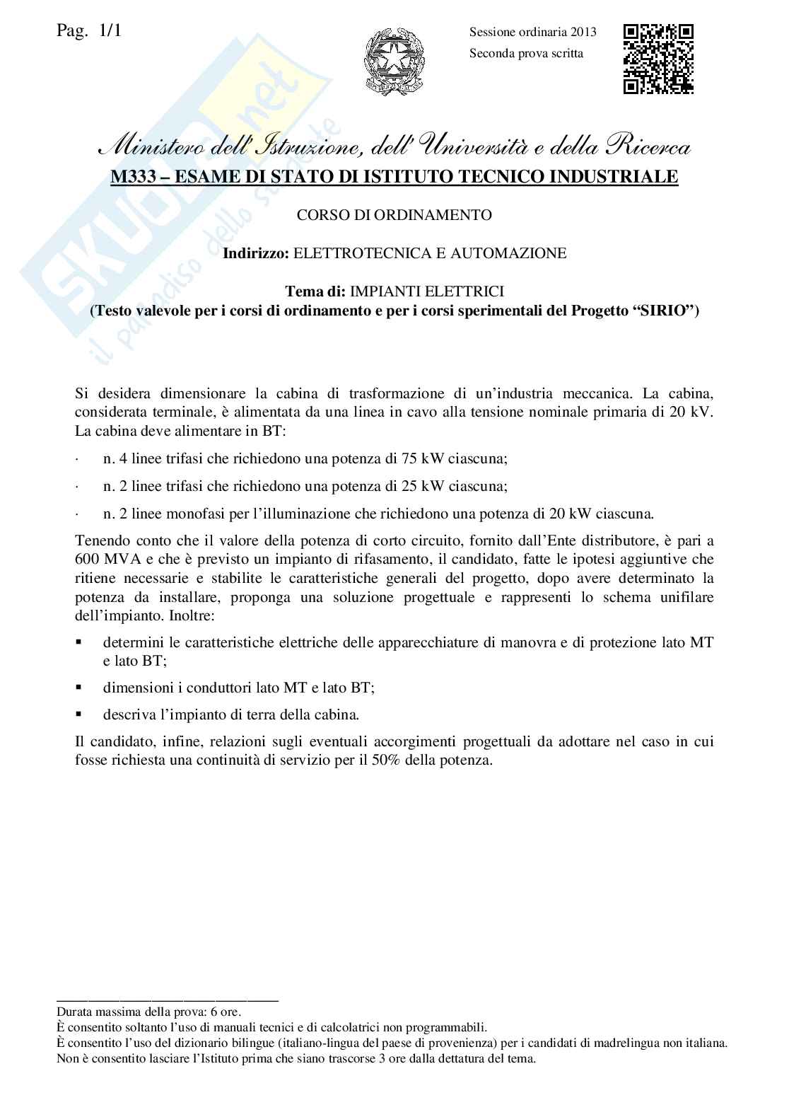 Impianti Elettrici - Maturità 2013 Pag. 1