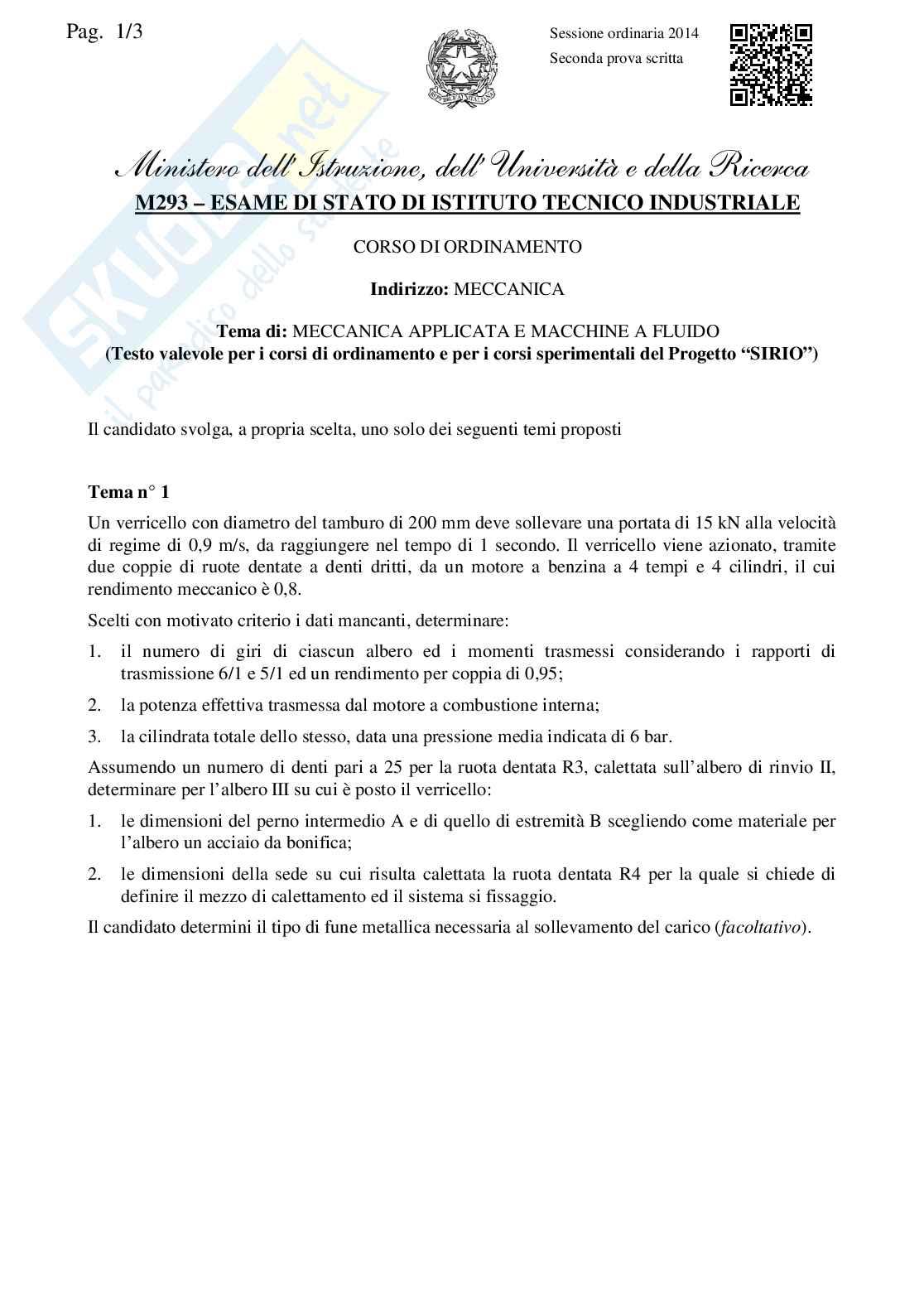 Ecco la traccia della seconda prova di meccanica applicata e macchine a fluido per la maturità 2014 dell'Istituto tecnico industriale, indirizzo meccanica.