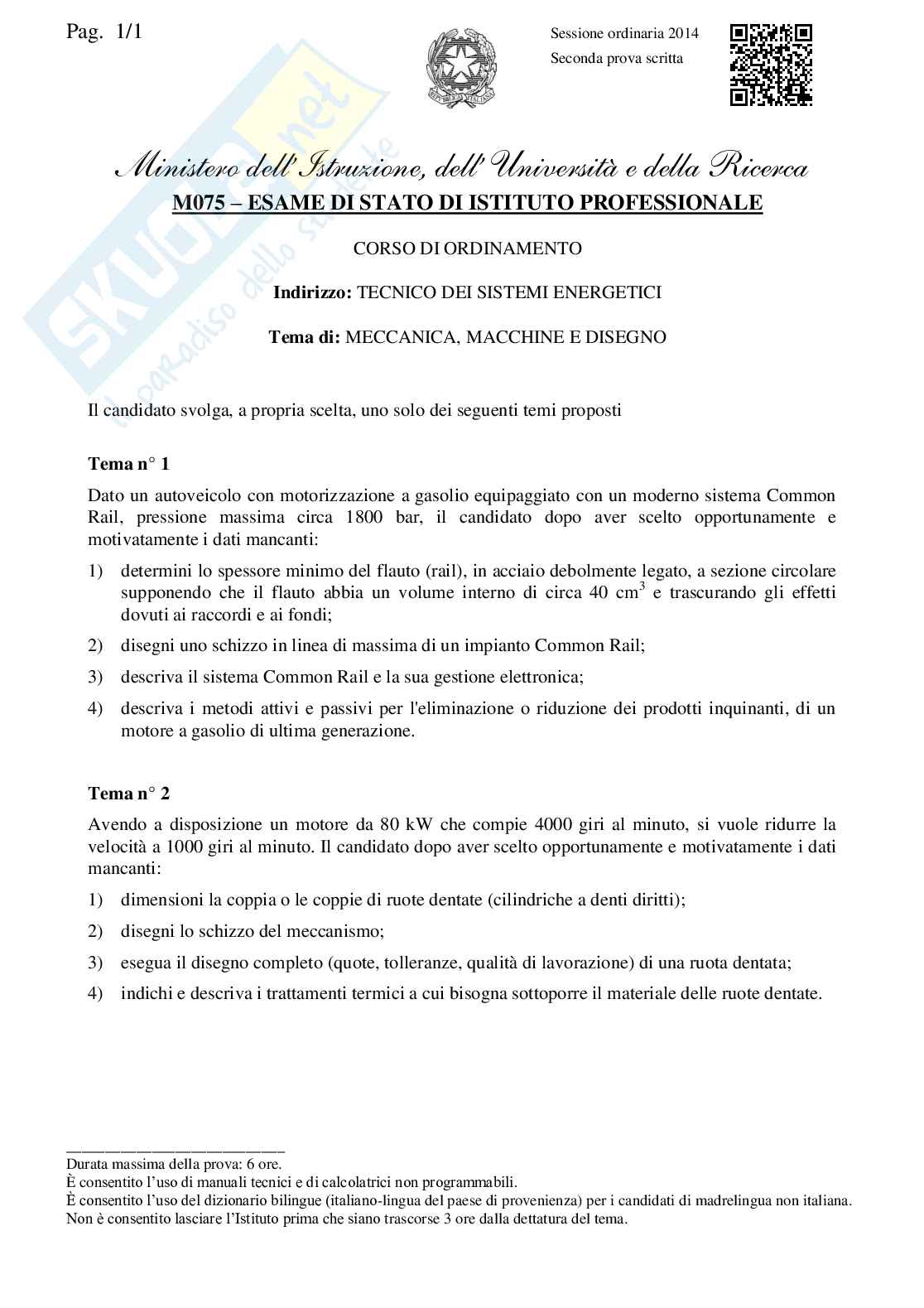 Ecco la traccia della seconda prova di meccanica, macchine e disegno per la maturità 2014 dell'Istituto tecnico dei sistemi energetici.