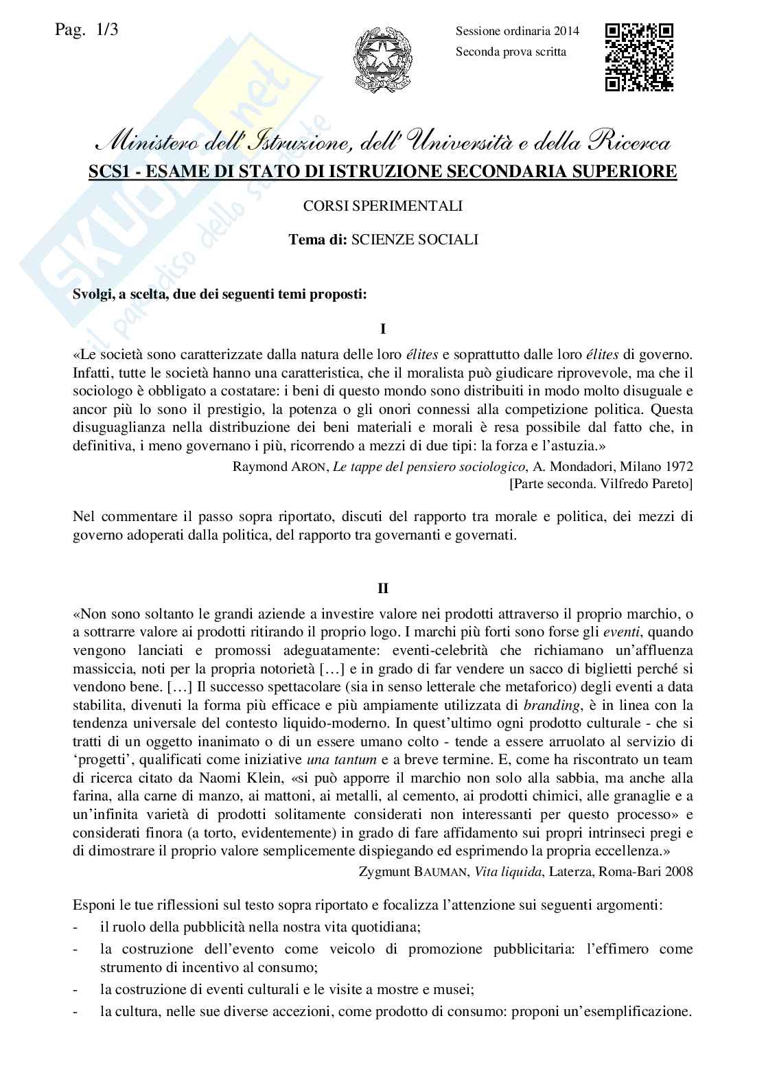 Ecco la traccia della seconda prova di Scienze sociali per la maturità 2014 del liceo delle Scienze sociali.