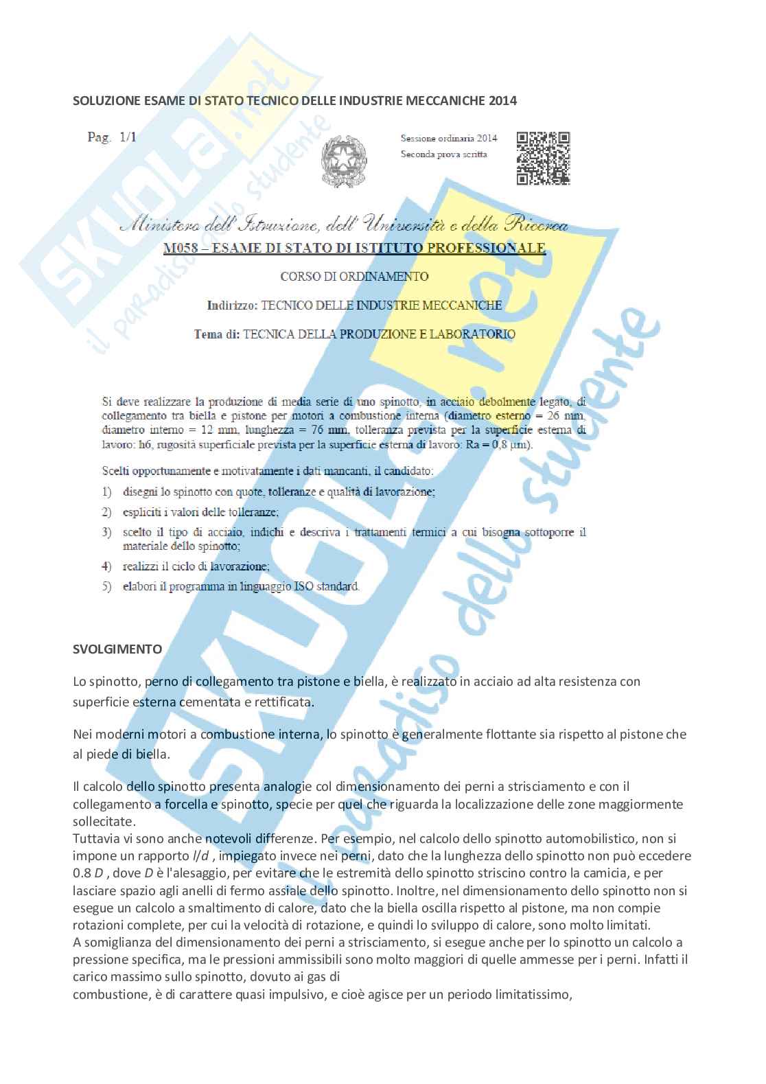 SOLUZIONE ESAME DI STATO TECNICO DELLE INDUSTRIE MECCANICHE 2014