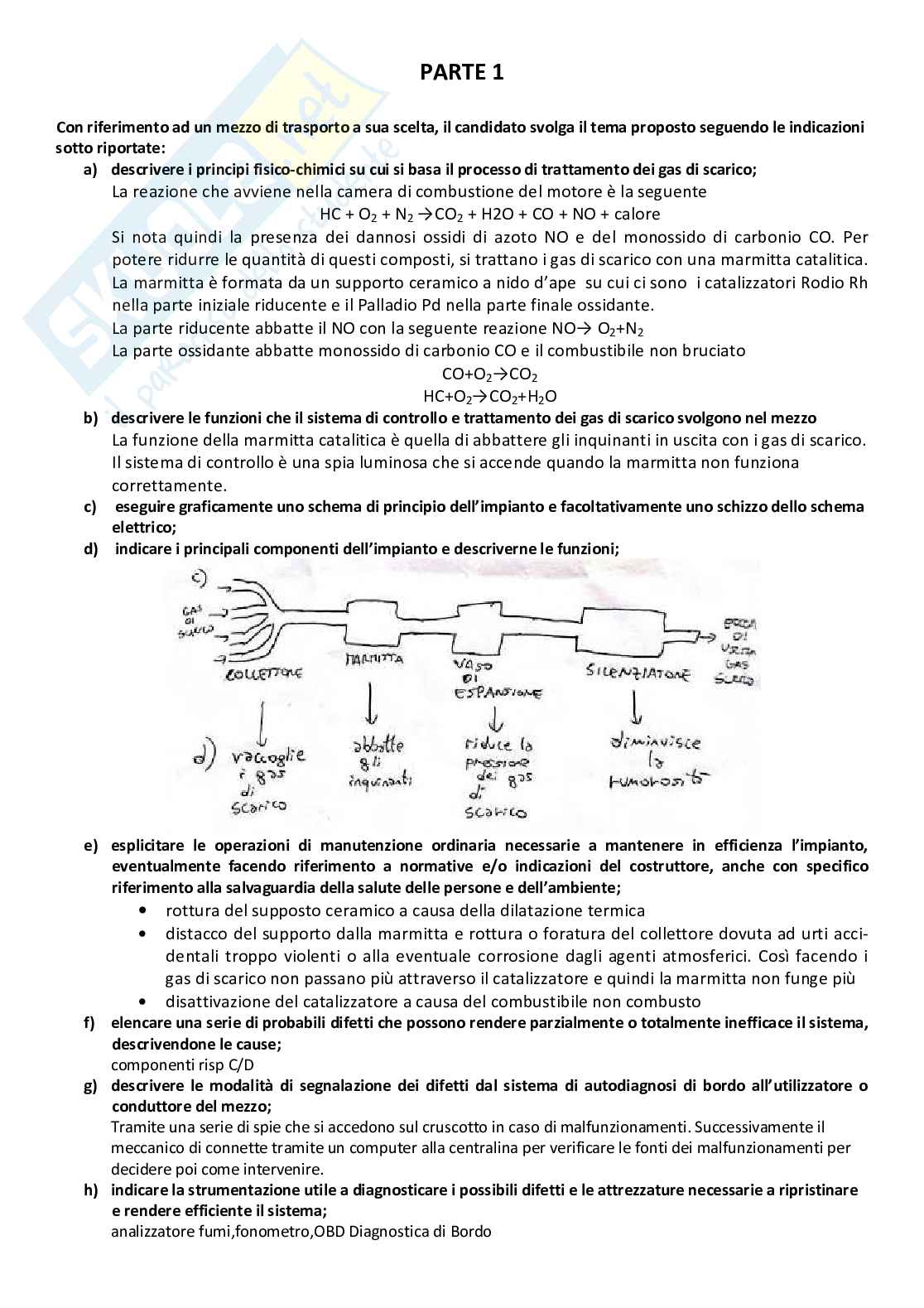 a) descrivere i principi fisico-chimici su cui si basa il processo di trattamento dei gas di scarico;