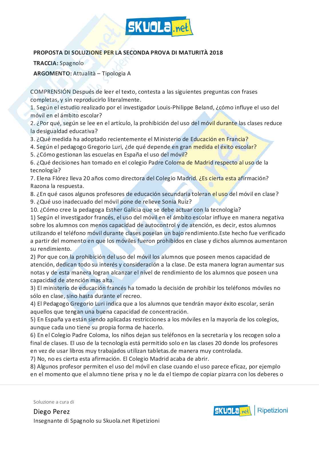 Qui di seguito la soluzione del tema di Spagnolo traccia A