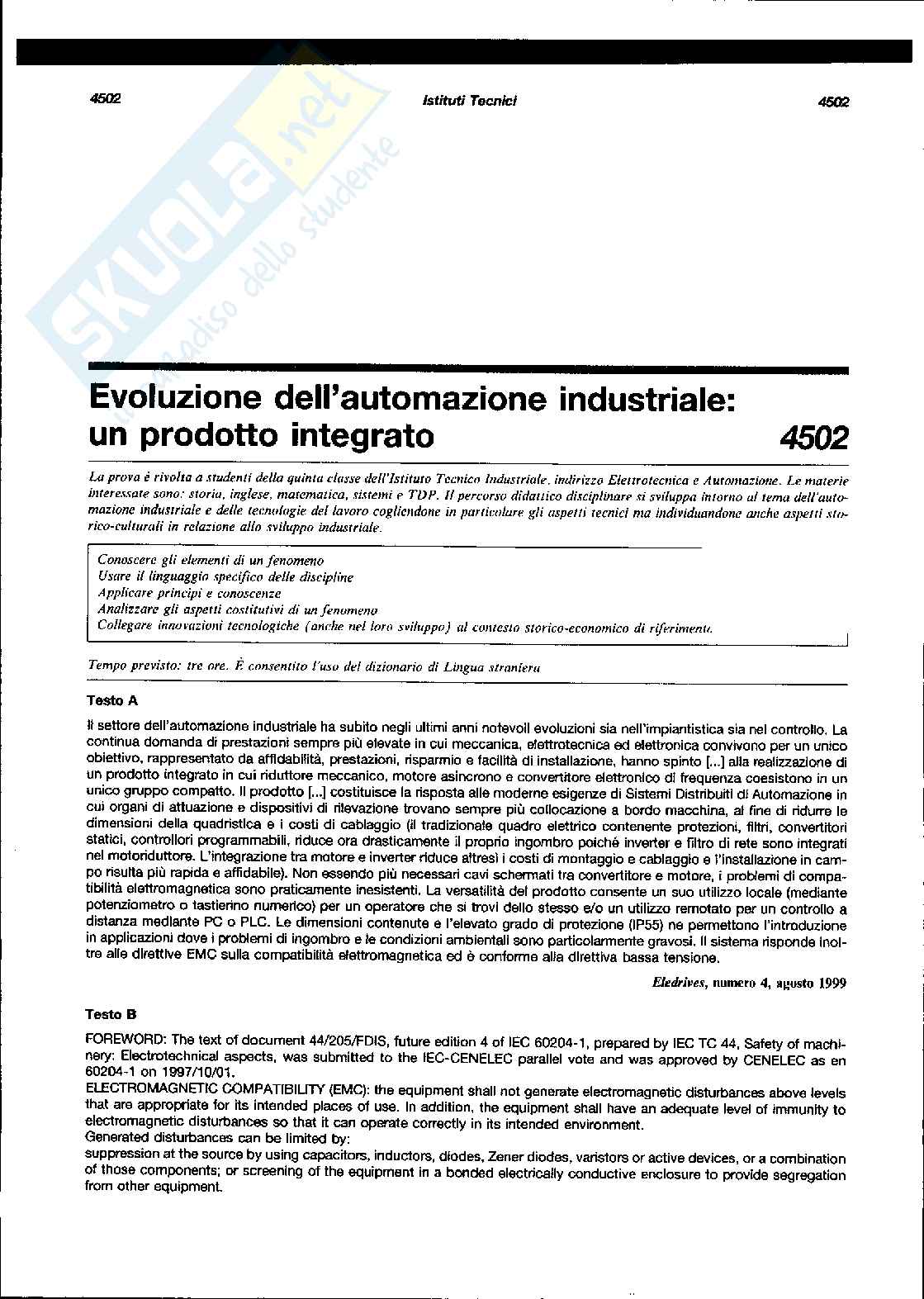 Terza prova ITI elettronica e automazioni - Simulazione Pag. 1