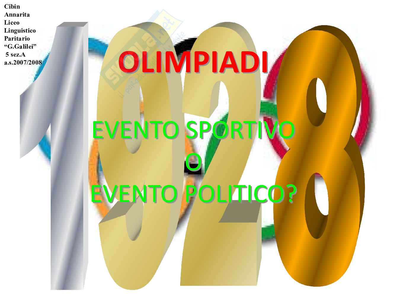 Titolo: 1928 olimpiadi evento sportivo o evento politico?