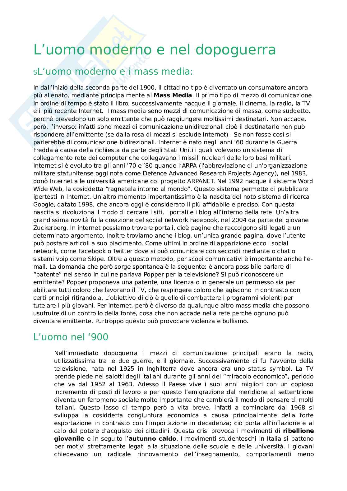 L’uomo moderno e nel dopoguerra