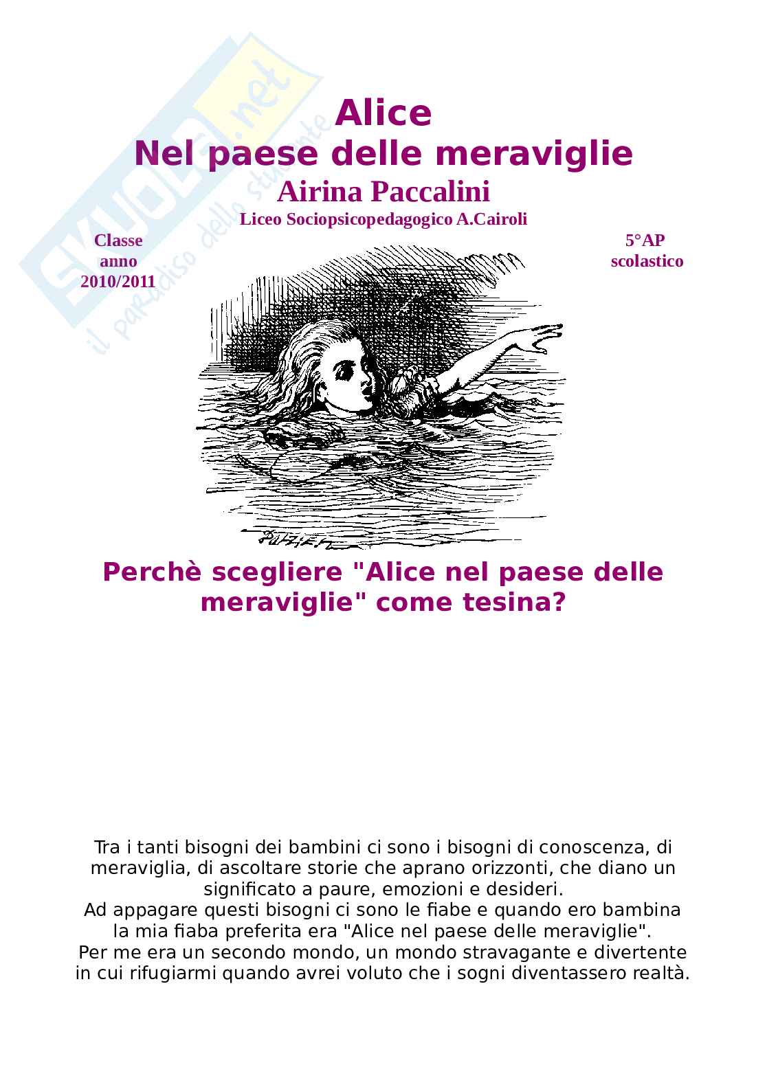 L'interpretazione pedagogica di ”Alice nel paese delle