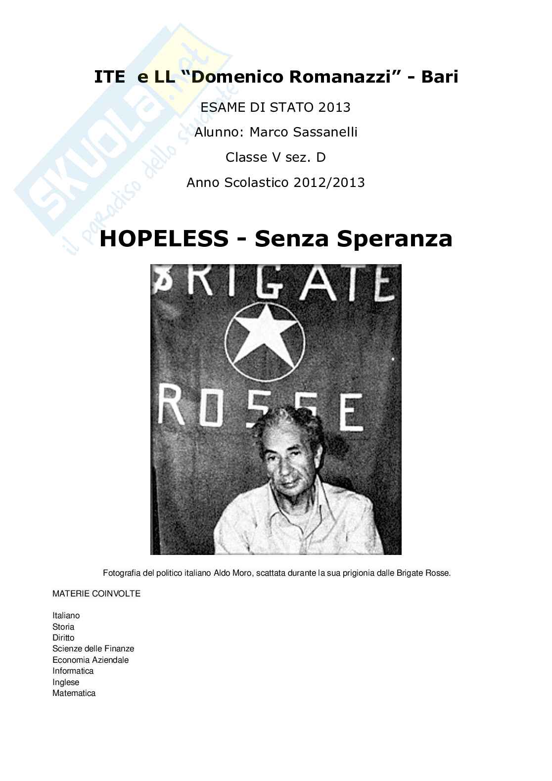 Il percorso d'esame si sviluppa sul tema della mancanza di speranza di