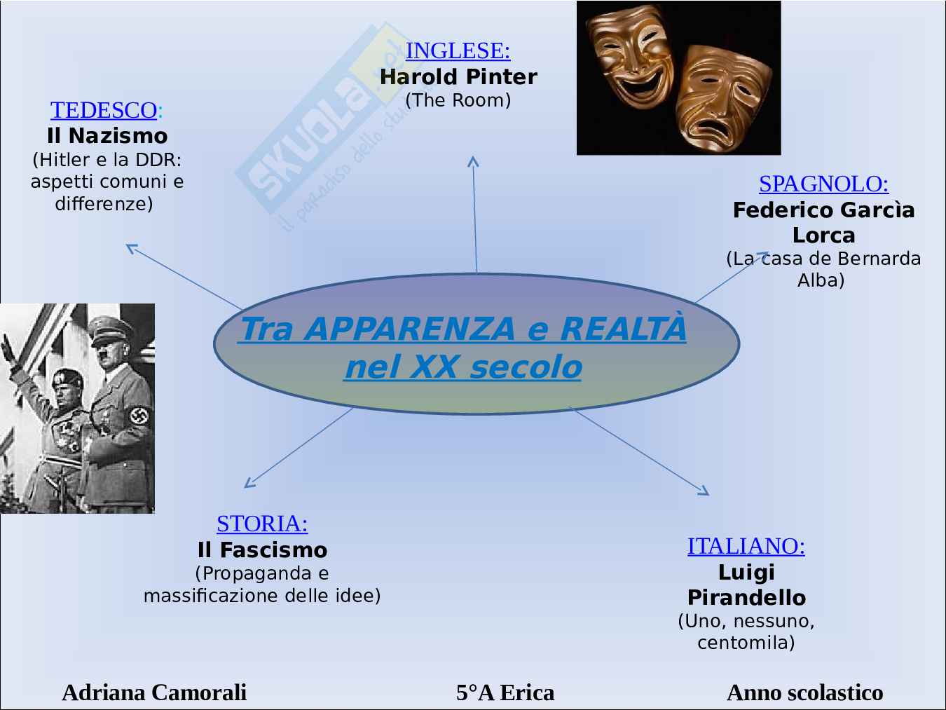 Questa tesina di maturità descrive i temi dell'apparenza e della realtà nel corso del XX secolo. Argomenti tesina maturità: in Inglese Harold Pinter, in Spagnolo Federico Garcia Lorca, in Italiano Luigi Pirandello, in Storia il fascismo, in Tedesco il nazismo.