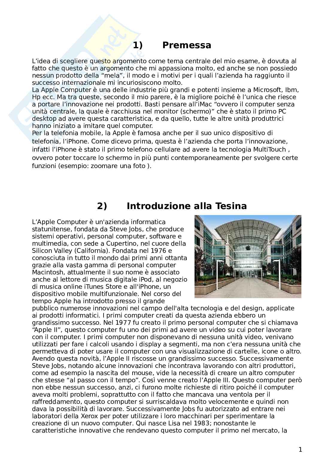 posizioni di leadership in diversi settori dell’area informatica. La Apple però, come