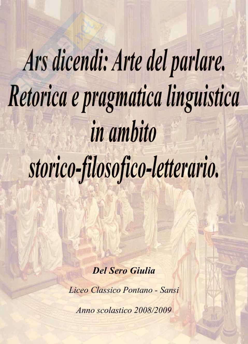Descrizione: la tesina, operando una lieve distinzione tra retorica e pragmatica linguistica, mira a realizzare un percorso in merito ai discorsi e alla loro persuasione.