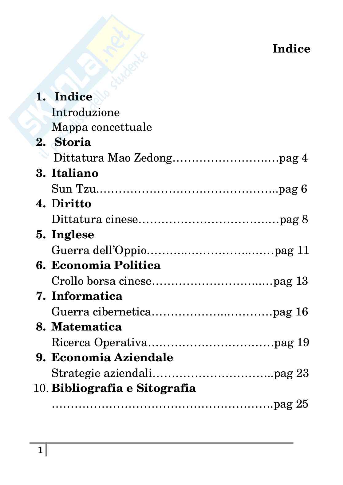 Questa tesina di maturità tratta dell'arte della guerra. L’arte della guerra è un trattato di strategia militare scritto intorno al VI-V secolo a.C in Cina. La guerra per il generale Sun Tzu è di vitale importanza sia per sé che per lo Stato. Si vince o si soccombe. Per vincere occorre saper valutare ogni situazione e saper analizzare il territorio, il nemico, le proprie forze e la capacità del generale.