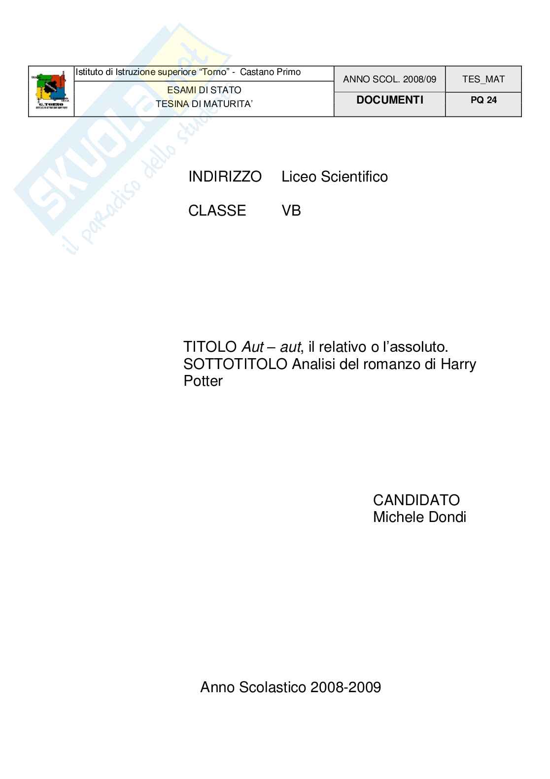 Aut–aut, il relativo o Analisi del romanzo di Harry Potter. Michele Dondi