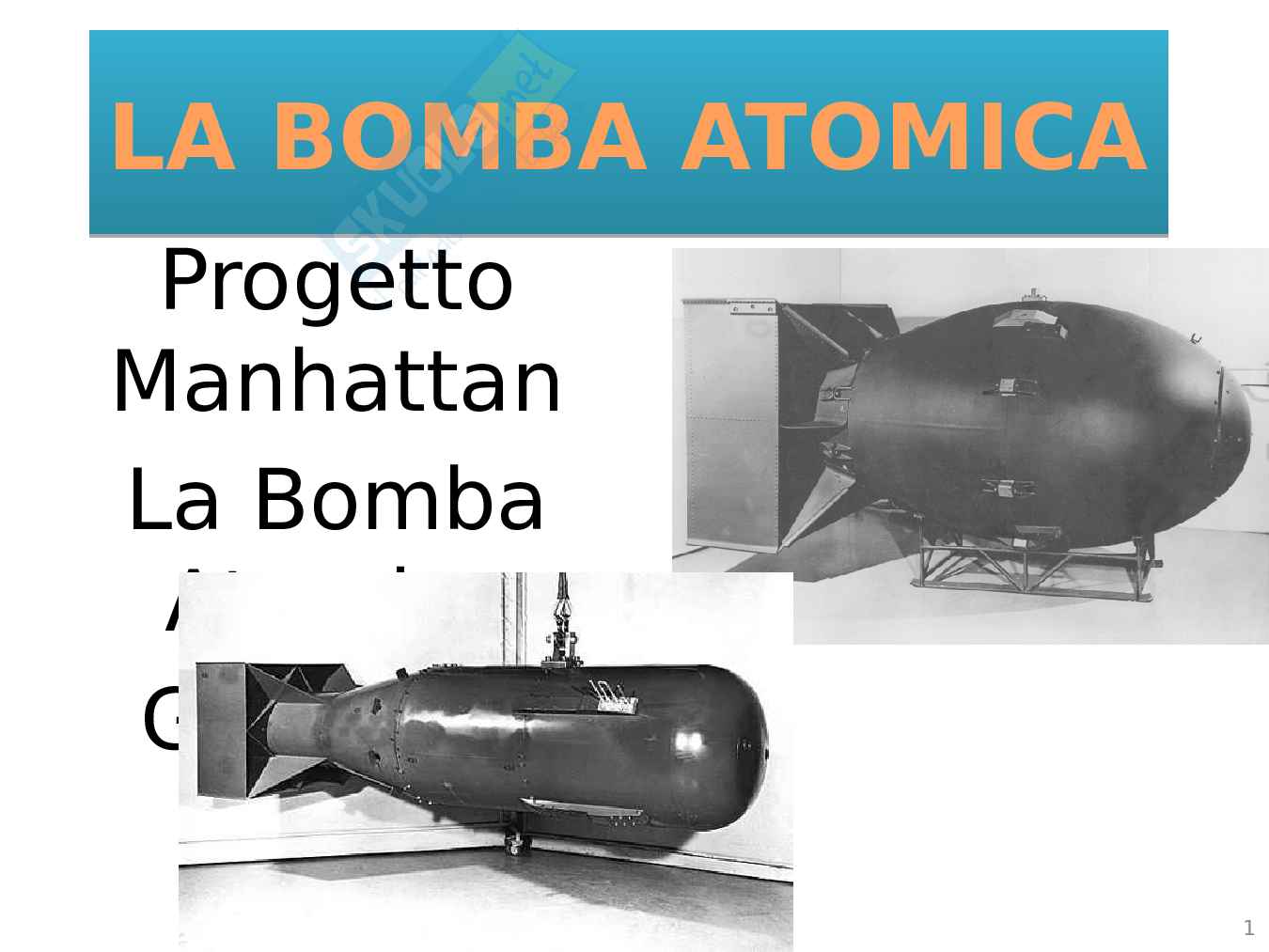 Analizzando prima il progetto Manhattan e le prime due missioni, su cui è utilizzata l'ordigno atomico, la tesina di maturità si concentra sul funzionamento e sugli effetti causati da essa stessa sulle città giapponesi.