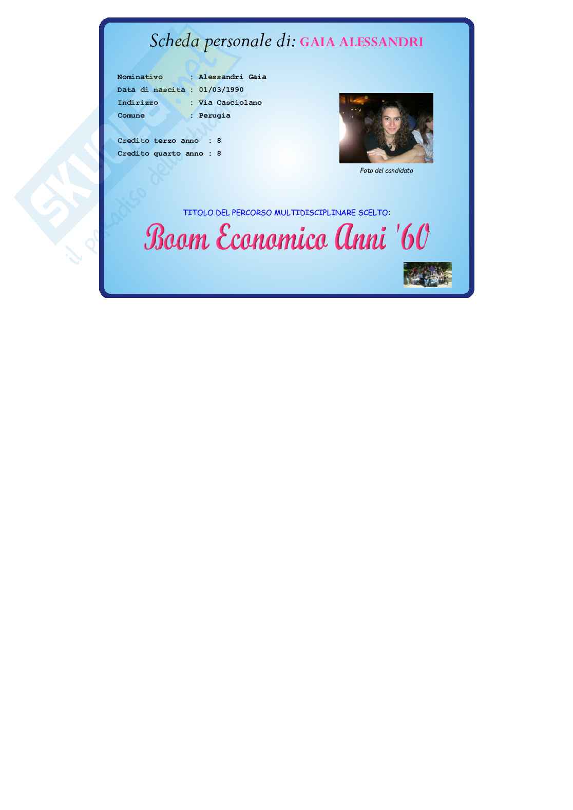 Sommario: Storia, Il boom economico, Italiano, Pasolini, articolo: critica alla società dei consumi, informatica, la P101 dell'olivetti, ragioneria, le macchine d'ufficio, diritto, art 21 della costituzione e regolamentazione della televisione, scienze delle finanze, la spesa pubblica, inglese, la Beat Generation