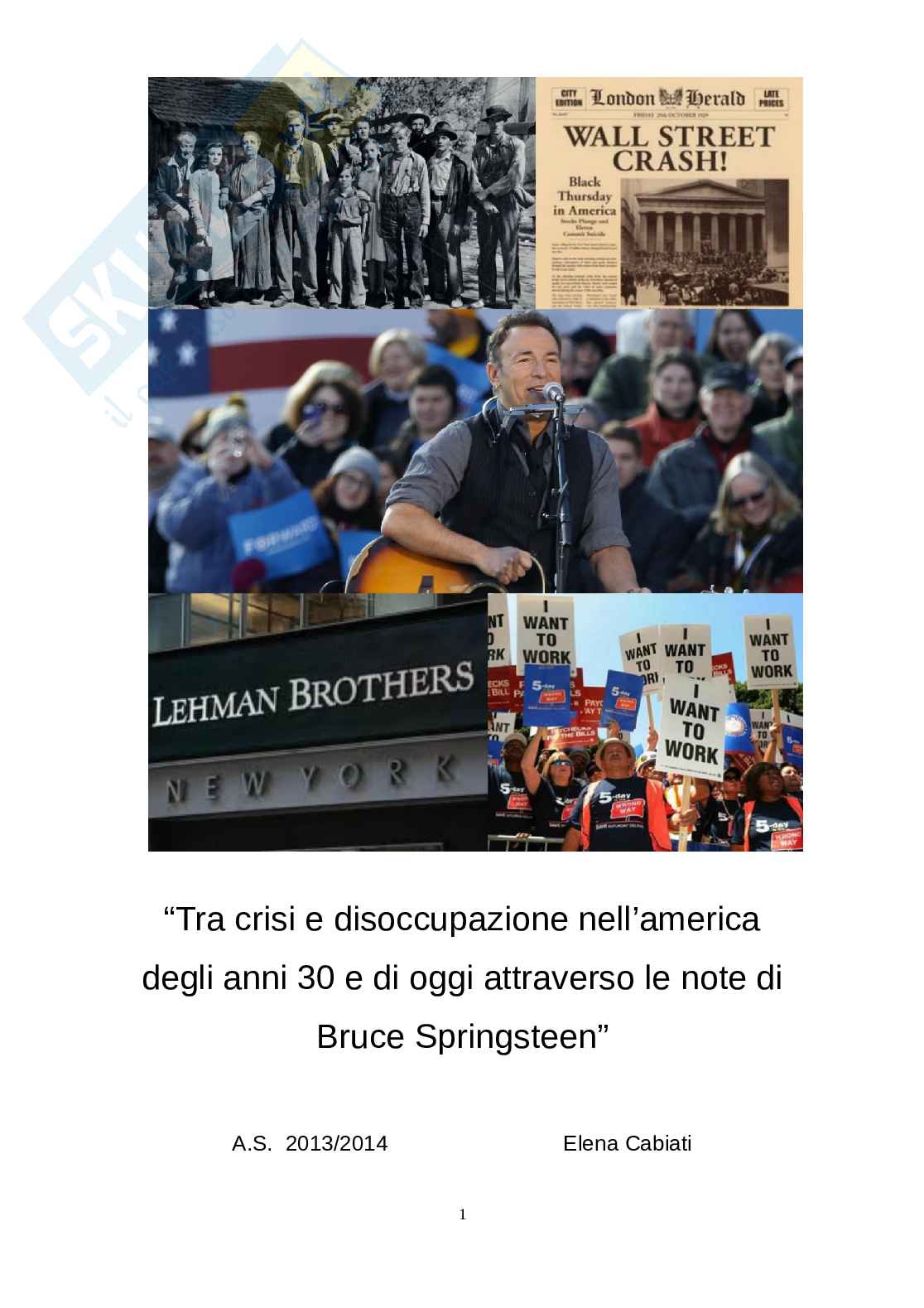 Ho scelto di trattare questo tema come oggetto della mia tesina di maturità, perché mi sono appassionata alle canzoni di Bruce Springsteen e sono rimasta colpita dal modo in cui tratta in esse temi sociali, storici, politici della società. È diventato in questo modo la voce della gente americana poiché è sempre pronto a schierarsi dalla loro parte attraverso le sue canzoni quando c’è qualcosa di ingiusto, qualcosa che non va.