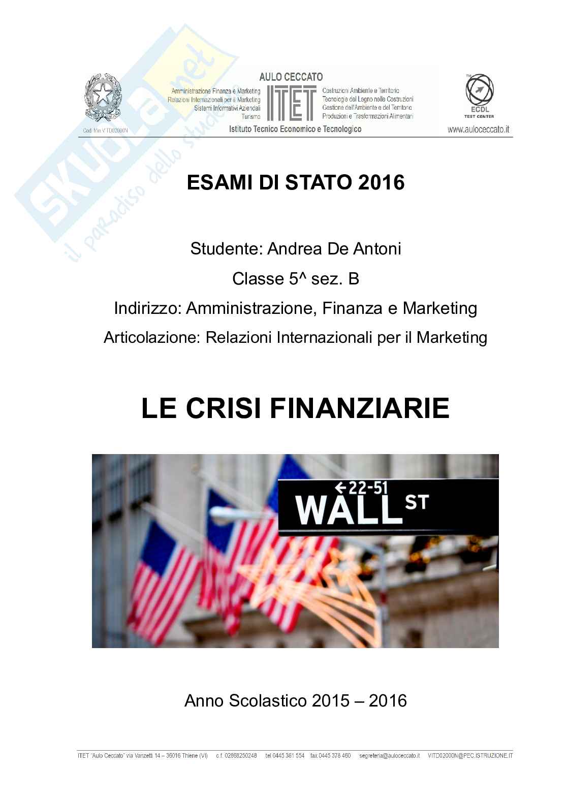 Introduzione Crisi finanziarie - Tesina
