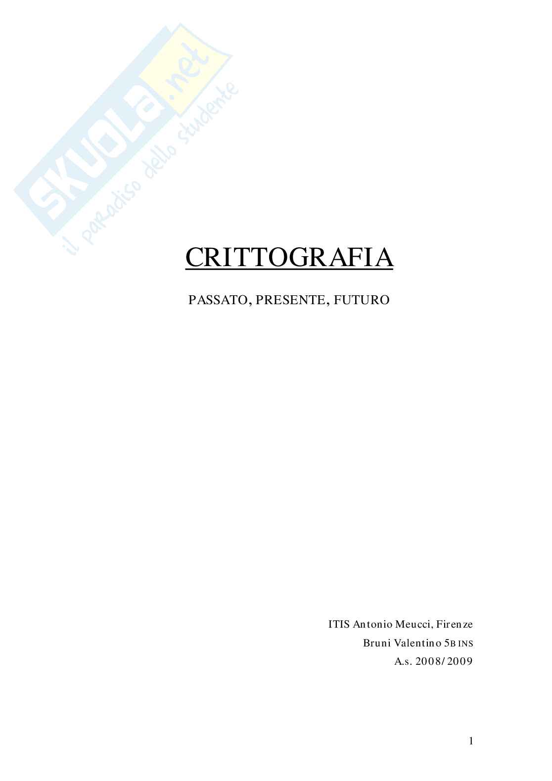 Descrizione: analisi dei principali metodi crittografici: dalla scitala greca alla cifratura di cesare, dal cifrario di vigenere alle cifrature polialfabetiche. crittografia nel xx secolo con analisi della macchina enigma. crittografia quantistica nel futuro.
