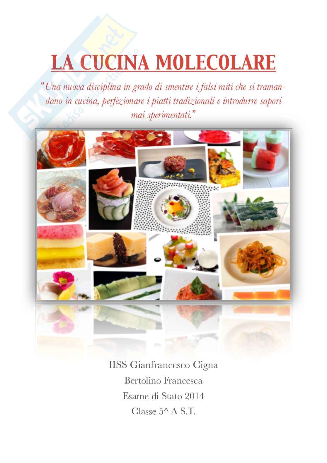 Ho indirizzato la mia tesina maturità liceo scientifico sulla cucina molecolare in quanto ho voluto unire al mio interesse gli argomenti che ho studiato in questi anni a scuola. L’Italia è riconosciuta da tutto il mondo come la patria del buon cibo, credo quindi che argomentare riguardo a una cosa che ci rappresenta così tanto sia una buona idea. Vorrei poter elogiare un po’ di più il nostro territorio langarolo, dominato dalle sinuose colline sterminate di vigneti, ma ho preferito soffermarmi su qualche cosa di più particolare tralasciando la tradizionale cucina e la sua
