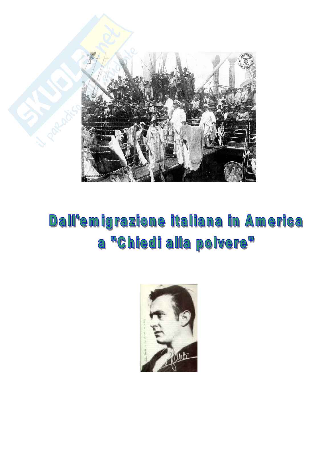 La xenofobia italiana di oggi dimentica che l'Italia è stata terra di emigranti. Caratteri dell'emigrazione italiana in America, discriminazione e razzismo, ma anche partecipazione al melting-pot culturale. La narrativa di J. Fante.