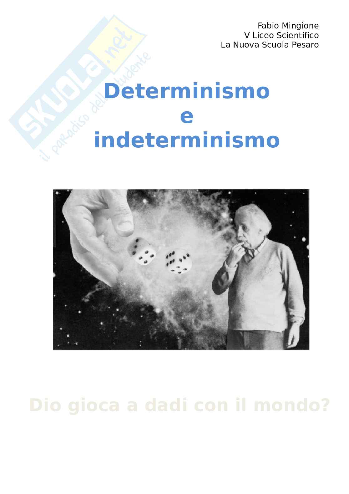 Questa tesina di maturità prende in esame il determinismo e l'indeterminismo, collegandolo ai seguenti argomenti: il principio di indeterminazione di Heisenberg in Fisica, l'ipotesi sul futuro dell'universo in Geografia astronomica.