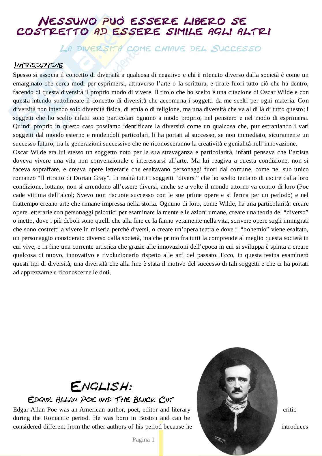 facendo di questa diversità il proprio modo di vivere. Il titolo che ho scelto è una citazione di Oscar Wilde e con
