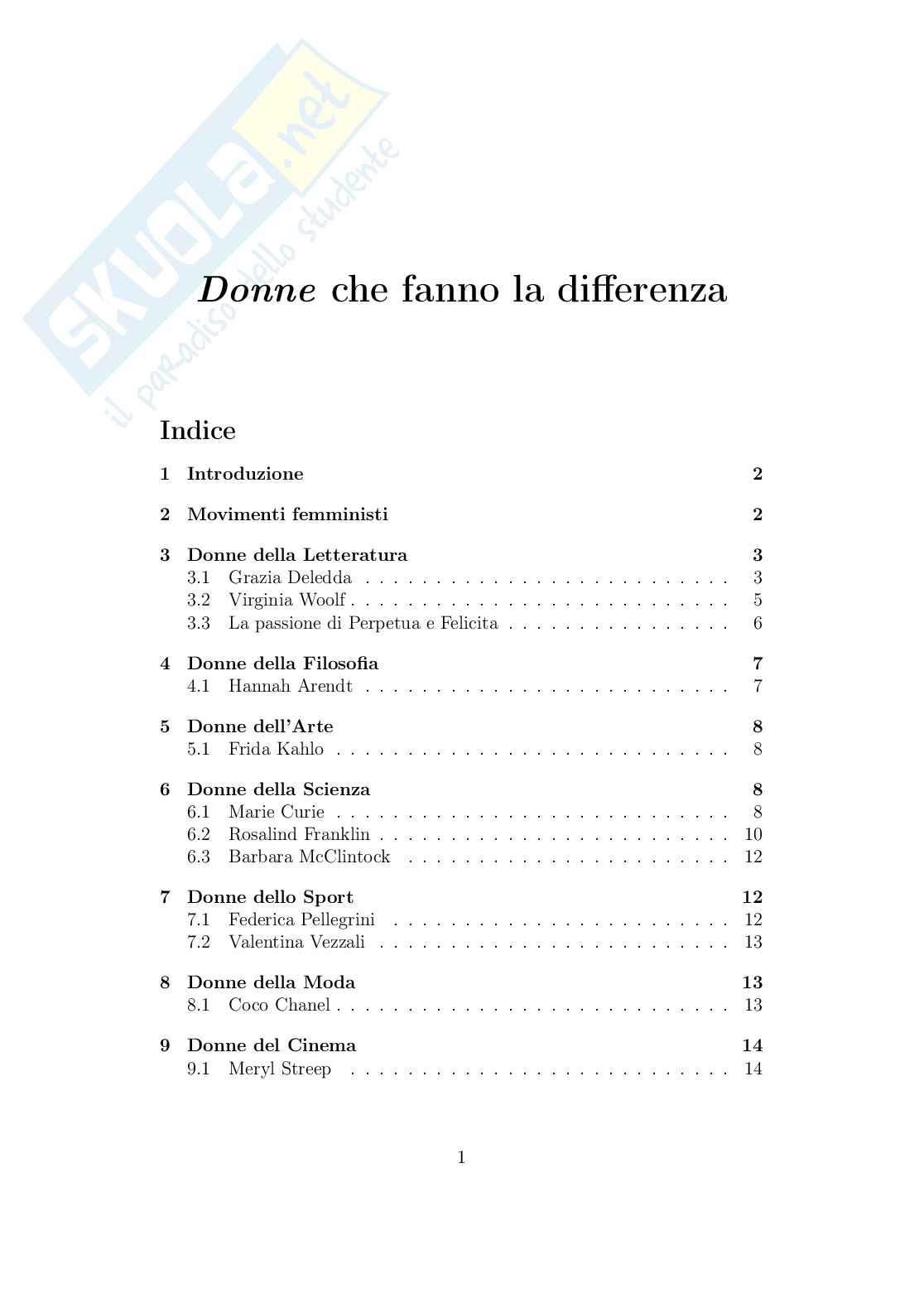 Questa tesina non è altro che una carrellata di alcune donne che sono riuscite a distinguersi nel proprio campo lavorativo; che esso riguardi, ad esempio la sfera umanistica, scientifica, sportiva o cinematografica, non ha