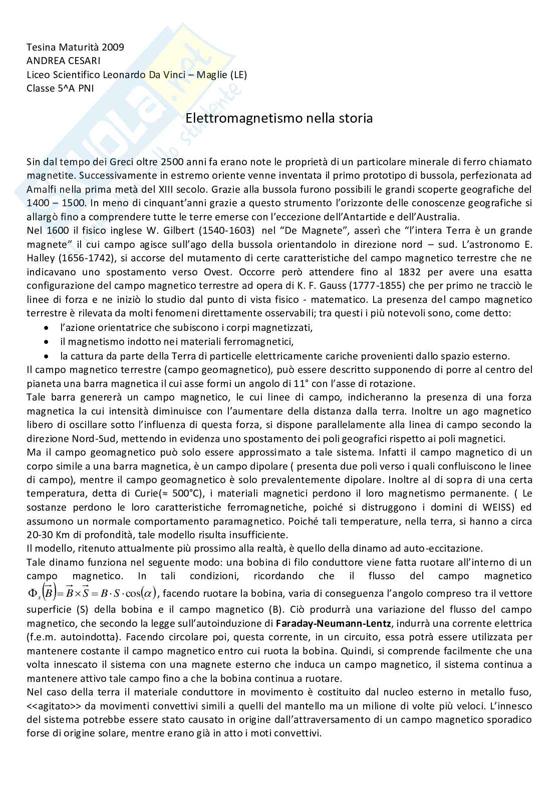 linee di forza e ne iniziò lo studio dal punto di vista fisico - matematico. La presenza del campo magnetico