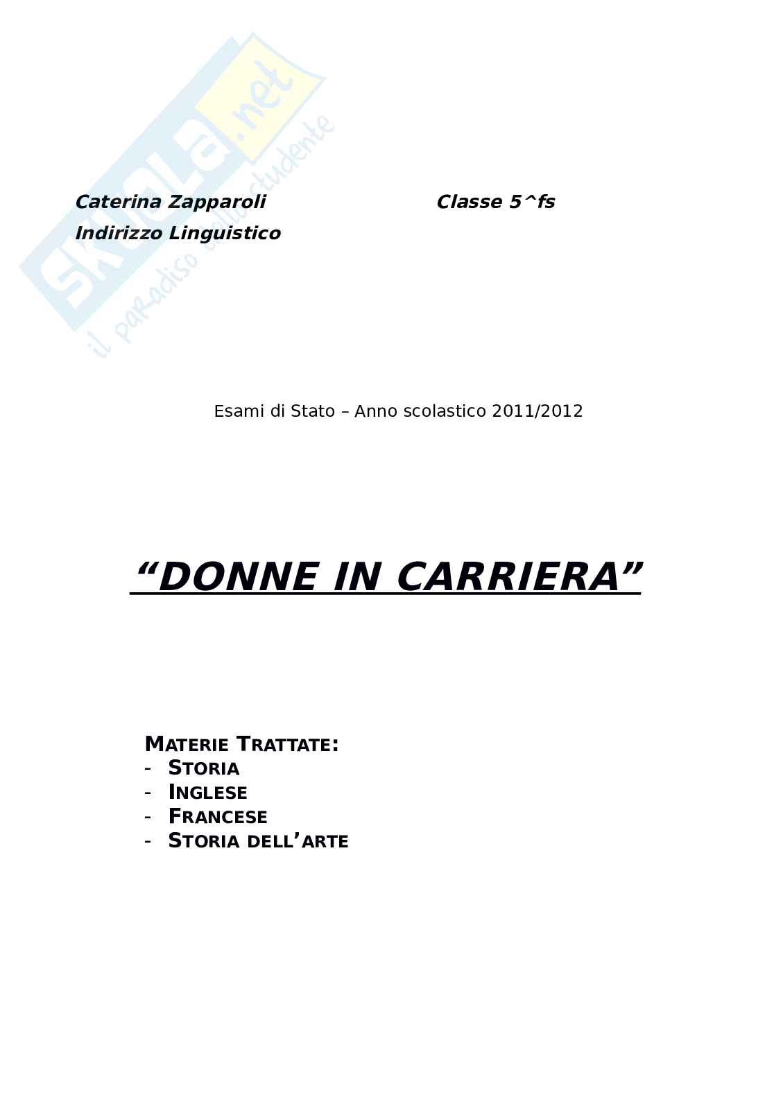 Questa tesina di maturità descrive la storia dell'emancipazione femminile, riportando esempi di donne che hanno fatto della lotta per i diritti uno dei punti più importanti della loro carriera; in tal senso due esempi molto noti sono quelli della scrittrice inglese Virginia Woolf e della scrittrice francese Simone De Beauvoir.