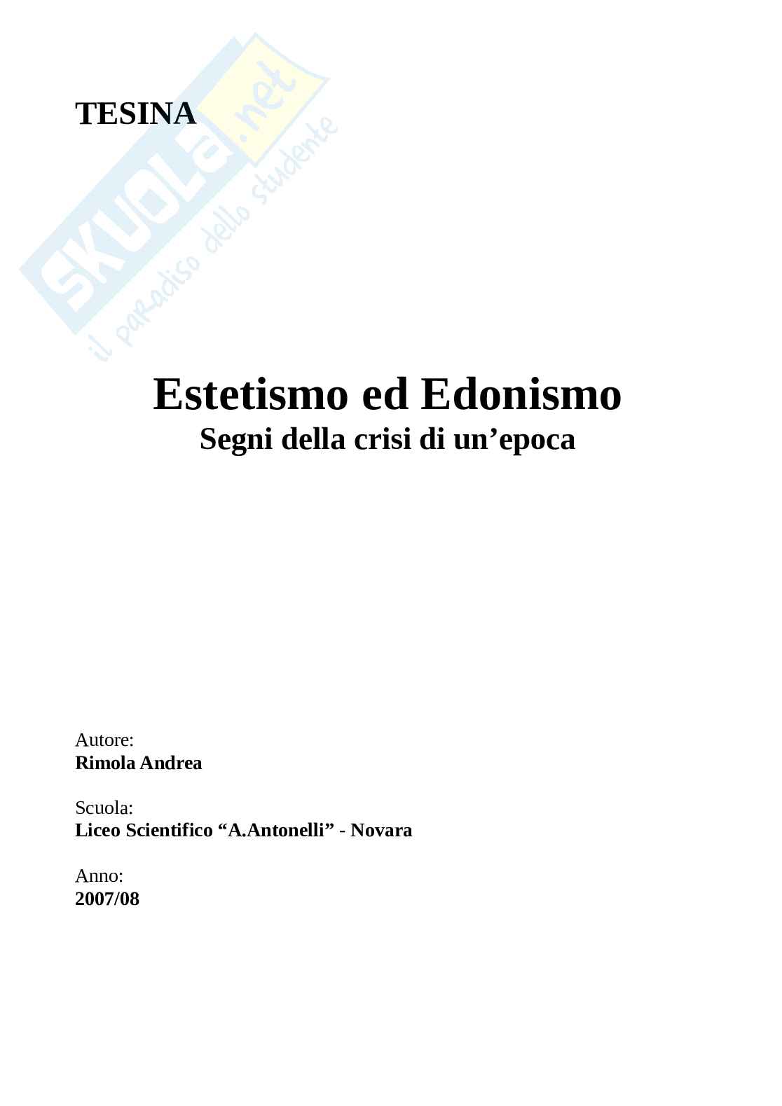 ricerca del piacere e la convinzione dell’esteta che la sua salvezza risieda