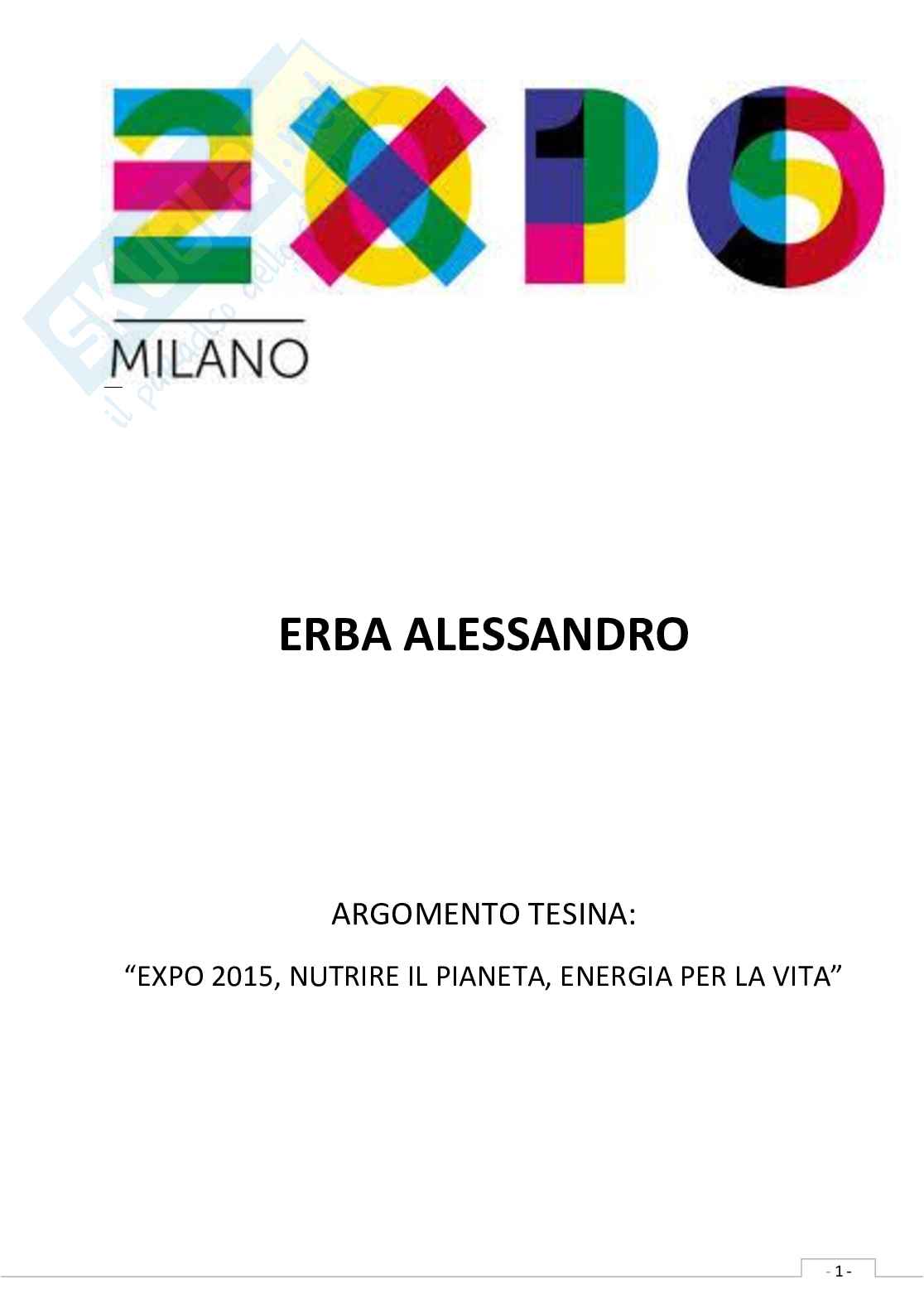 Tesina riguardante l'evento che si tiene a Milano dal 1 maggio al 31 ottobre 2015 , incentrato sul tema del cibo e della nutrizione.