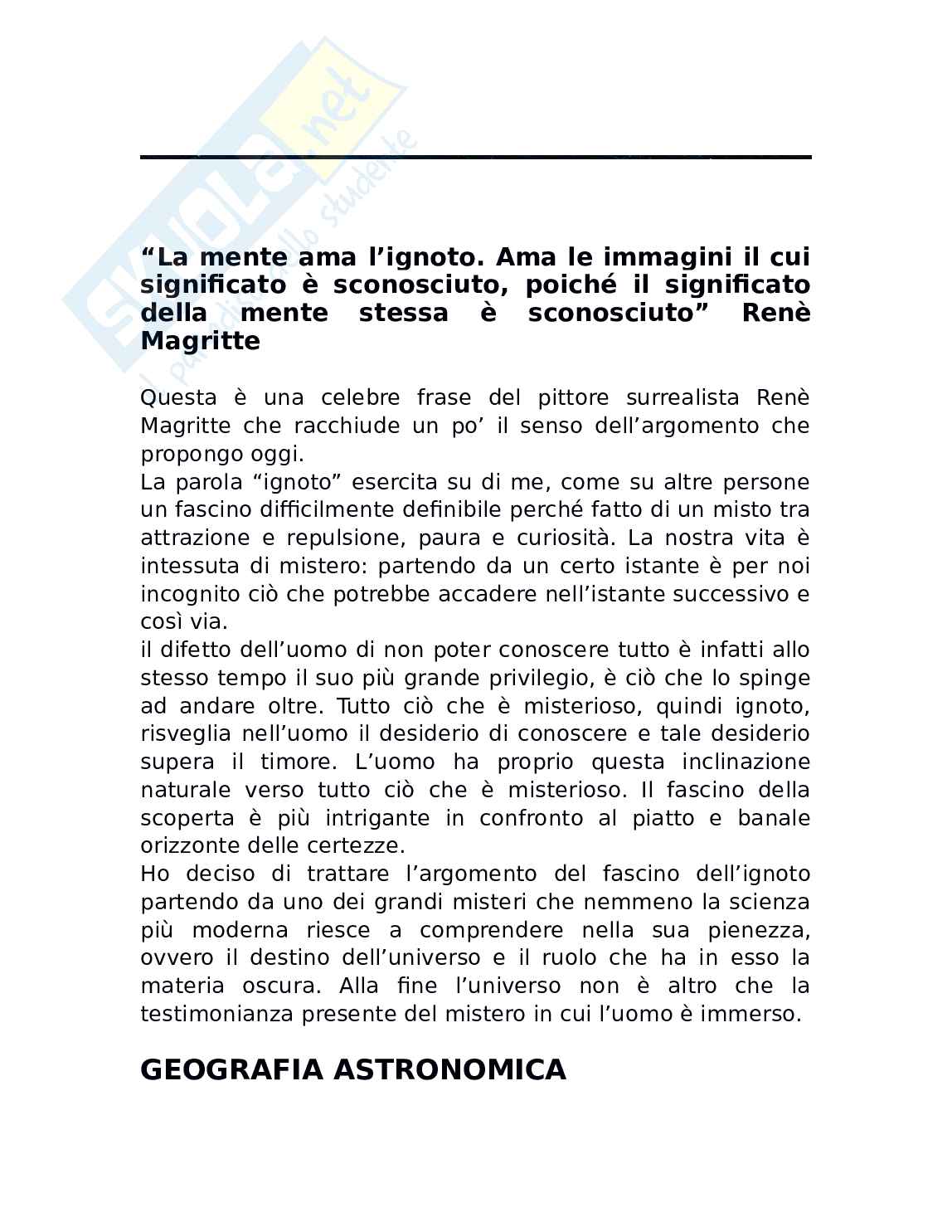 mistero, ma nello stesso periodo soprattutto nell'universo