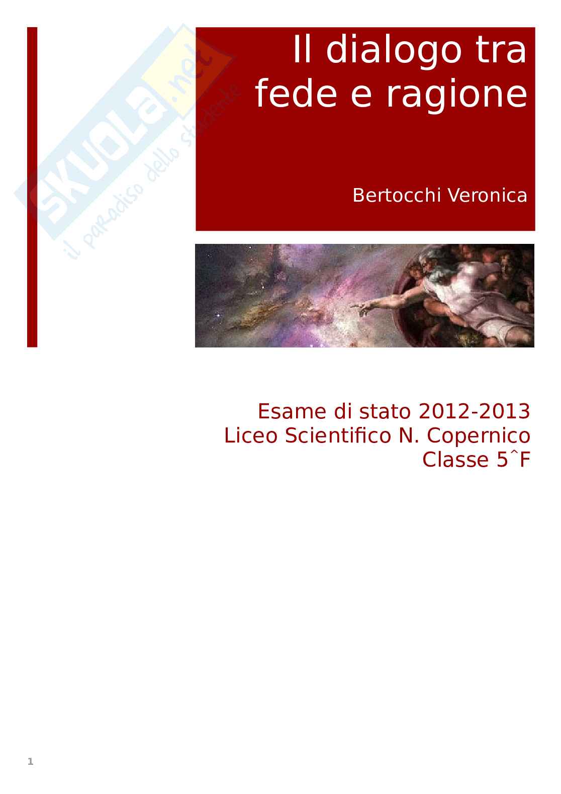 La mia tesina di maturità vuole dunque essere un tentativo di celebrare lo slancio dell’uomo verso la conoscenza, ripercorrendo i momenti centrali della scoperta di ciò che sta alla base di tutto ciò che lo circonda (l’atomo) e le varie fasi che hanno portato alla formulazione della teoria del Big bang attraverso cui si spiega la nascita dell’universo, e sottolineando come questa ricerca costante della verità continui a produrre i suoi frutti nelle scoperte scientifiche ancora oggi. Ma poiché ritengo che l’uomo sia un’eccezionalità non giustificabile da modelli matematici, tenterò di approfondire il pensiero di grandi filosofi riguardo alla scienza, e più in generale alla ragione, e alla sua compatibilità con la fede in un “assoluto” non dimostrabile.