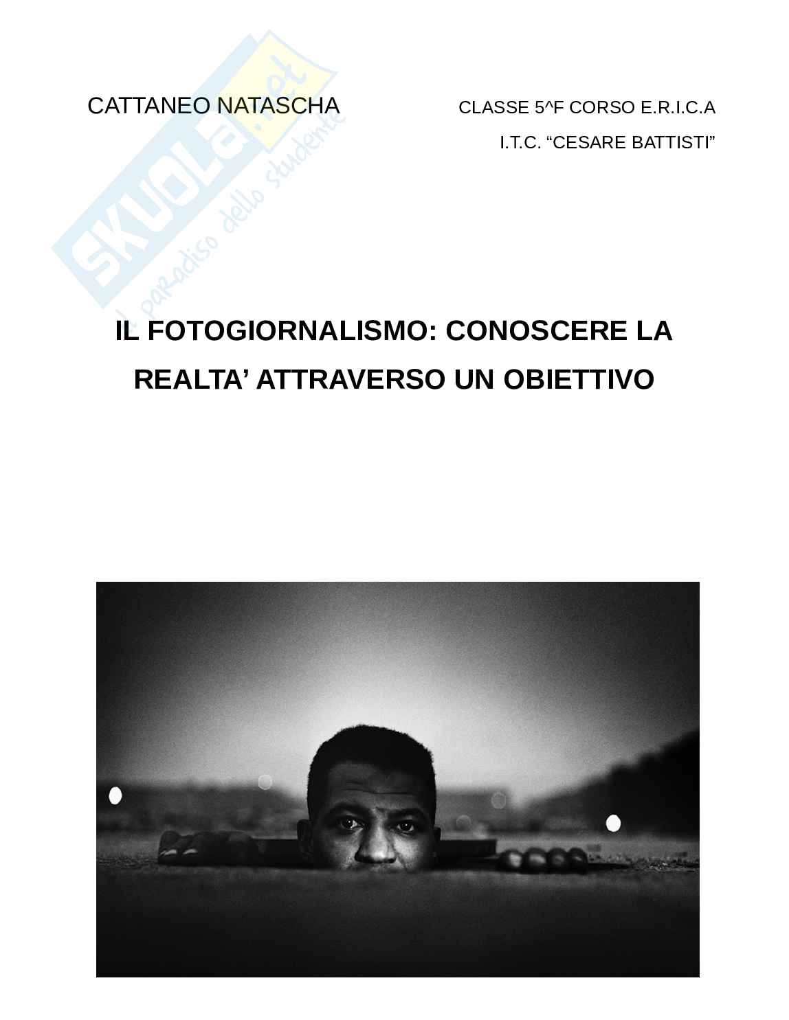 Questa tesina descrive il fotogiornalismo. La tesina di maturità permette i seguenti collegamenti interdisciplinari: in Storia dell'arte le origini della fotografia, in Inglese i fondatori della corporazione Magnum photos, in Storia la segregazione americana e in Tedesco il caso di Anja Niedringhaus.