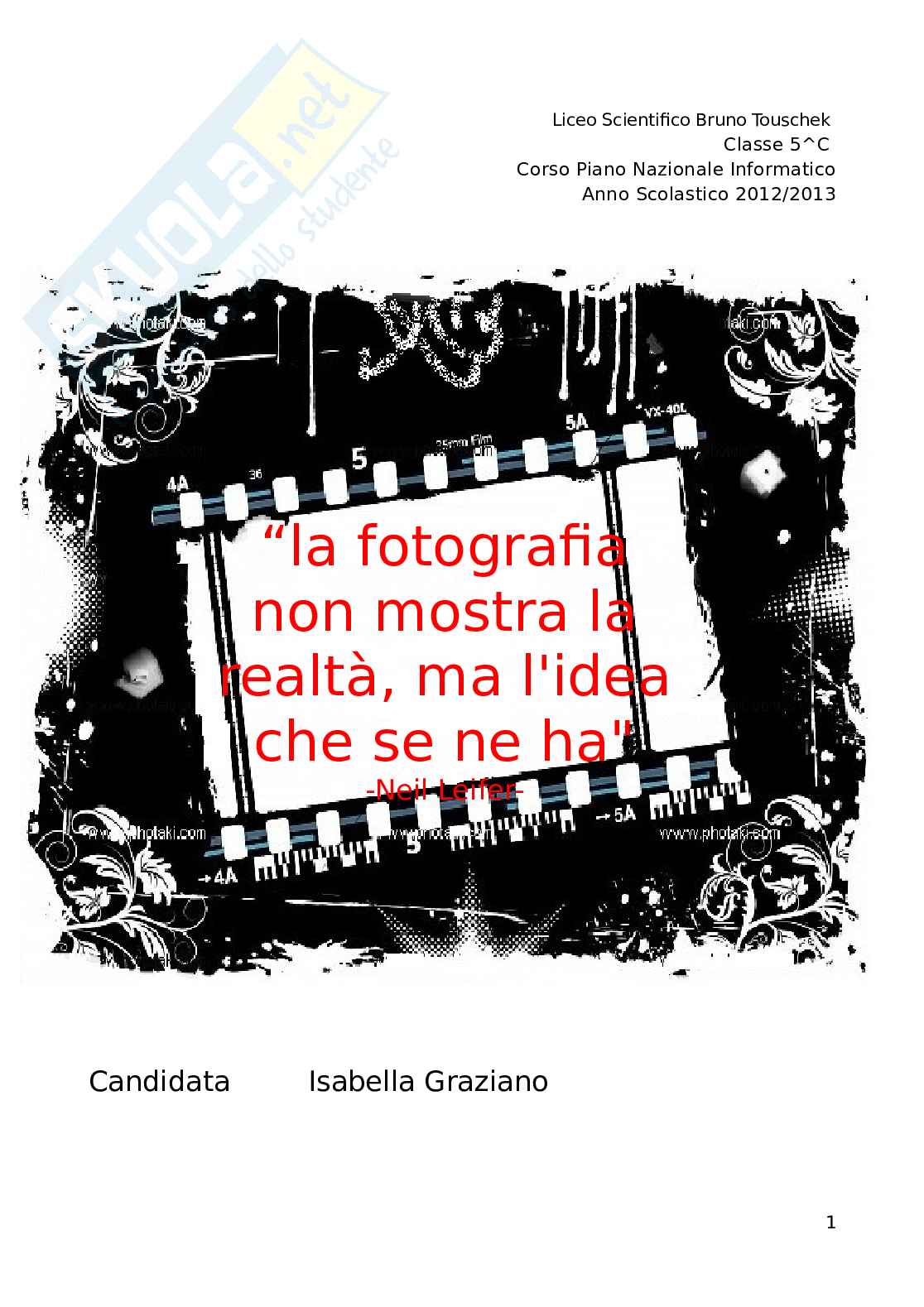 La tesina maturità scientifica prendere in esame la fotografia. La tesina di maturità permette i seguenti collegamenti interdisciplinari: in Fisica l'occhio umano e l'effetto fotoelettrico, in Storia la propaganda nel regime fascista, in Storia dell'arte l'impressionismo e in Italiano Verga come fotografo.
