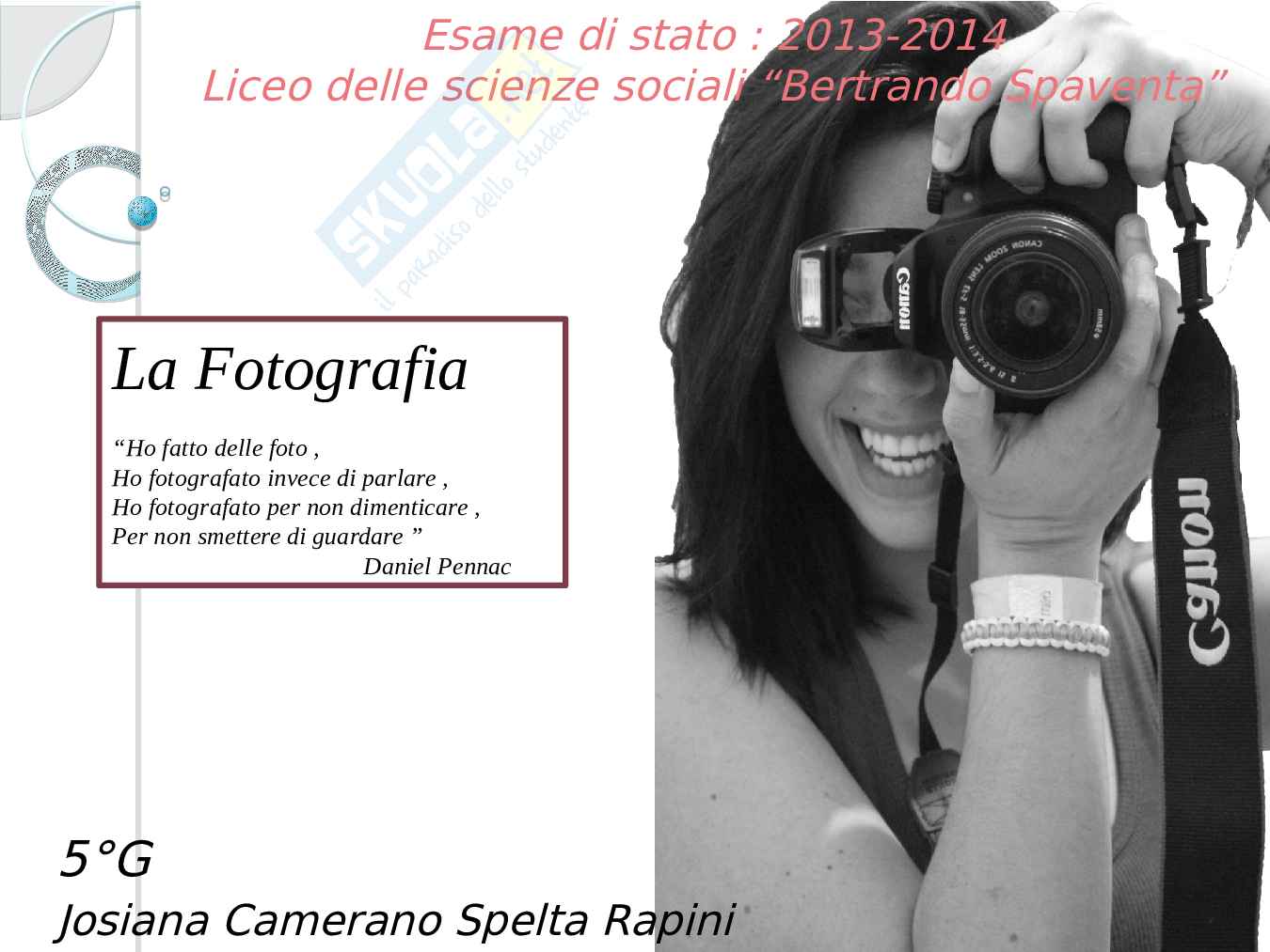 Con un semplice gesto si possono fissare per sempre attimi, volti e luoghi in modo che le esperienze più importanti non vengano mai dimenticate. La mia tesina abbraccia anche le altre materie scolastiche.