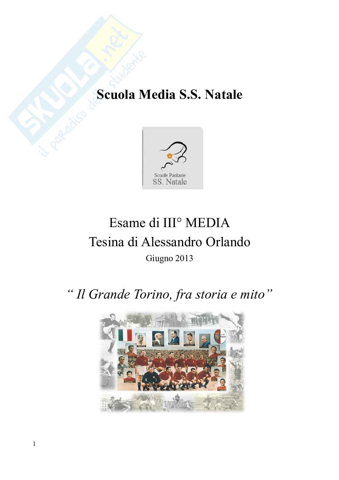 La motivazione principale che mi ha spinto a svolgere questa tesina di terza media è stata la passione. La passione per il calcio, per il Torino, per gli avvenimenti storici più importanti del nostro paese. Ma la cosa più interessante è che sentiì pronunciare per la prima volta la parola: “Grande Torino” quand'ero molto piccolo, avevo 5 anni e di calcio non ne “ masticavo” molto, ma era un mondo che mi interessava e mi attraeva sempre di più. Del Grande Torino, come molte persone, ne sentiì parlare da mio nonno, che sempre mi affascinava coi suoi racconti di gioventù spensierata e di guerra. Se oggi dovessi dedicare a qualcuno la mia tesina la dedicherei a lui, con grande rammarico di non averlo ascoltato abbastanza. Adesso, spero stia giocando nel Cielo infinito insieme ai Campioni.
