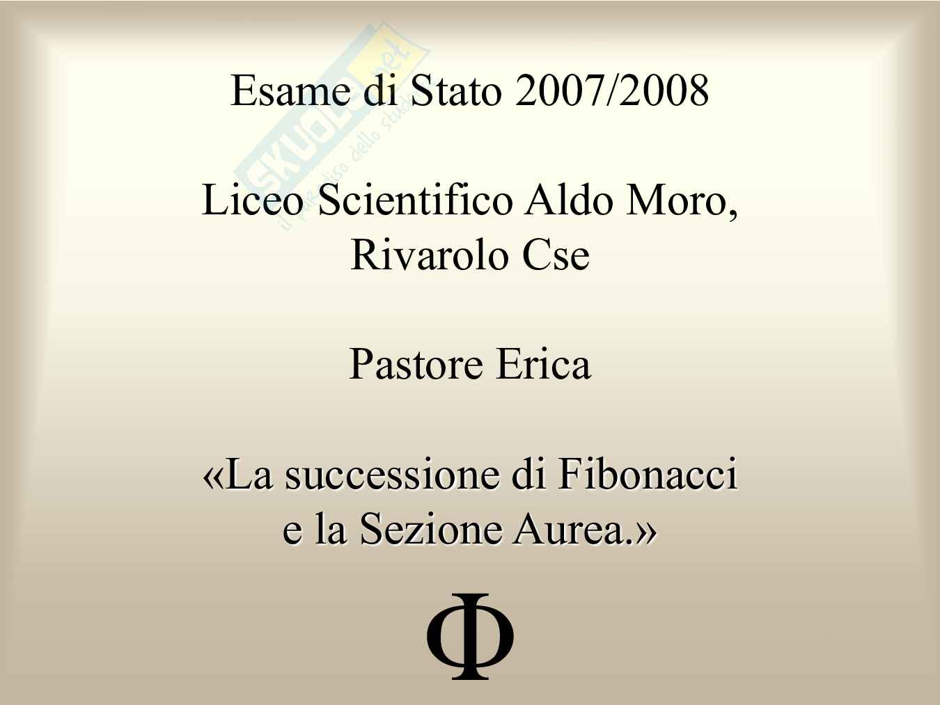 Descrizione: il percorso è diviso in due parti principali: la successione di fibonacci e il rapporto aureo. la tesina inizia con la spiegazione delle successioni e in particolare di quella di fibonacci, le sue proprietà e le sue applicazioni in vari campi: mate