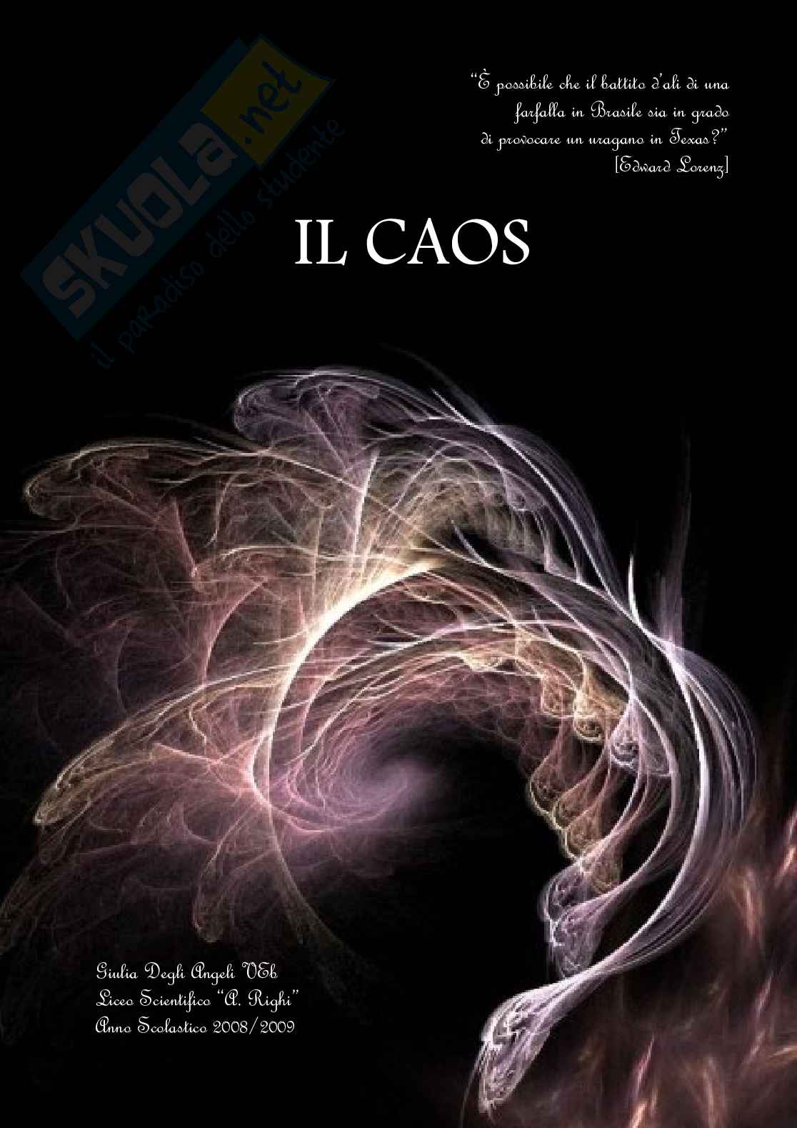 Sommario: fisica: la nascita della scienza del caos e l'effetto farfalla. geografia astronomica: il moto dei pianeti attorno al sole. storia: il crollo della borsa nel 1929, lo studio dei mercati tramite i frattali. Italiano: Pirandello figlio del caos, il fu Mattia Pascal, l'assurdo e il paradossale. Filosofia: Nietzsche, la nascita della tragedia, la gaia scienza, il mondo visto come puro caos. Latino: Petronio, il Satyricon, la critica al caos della società .